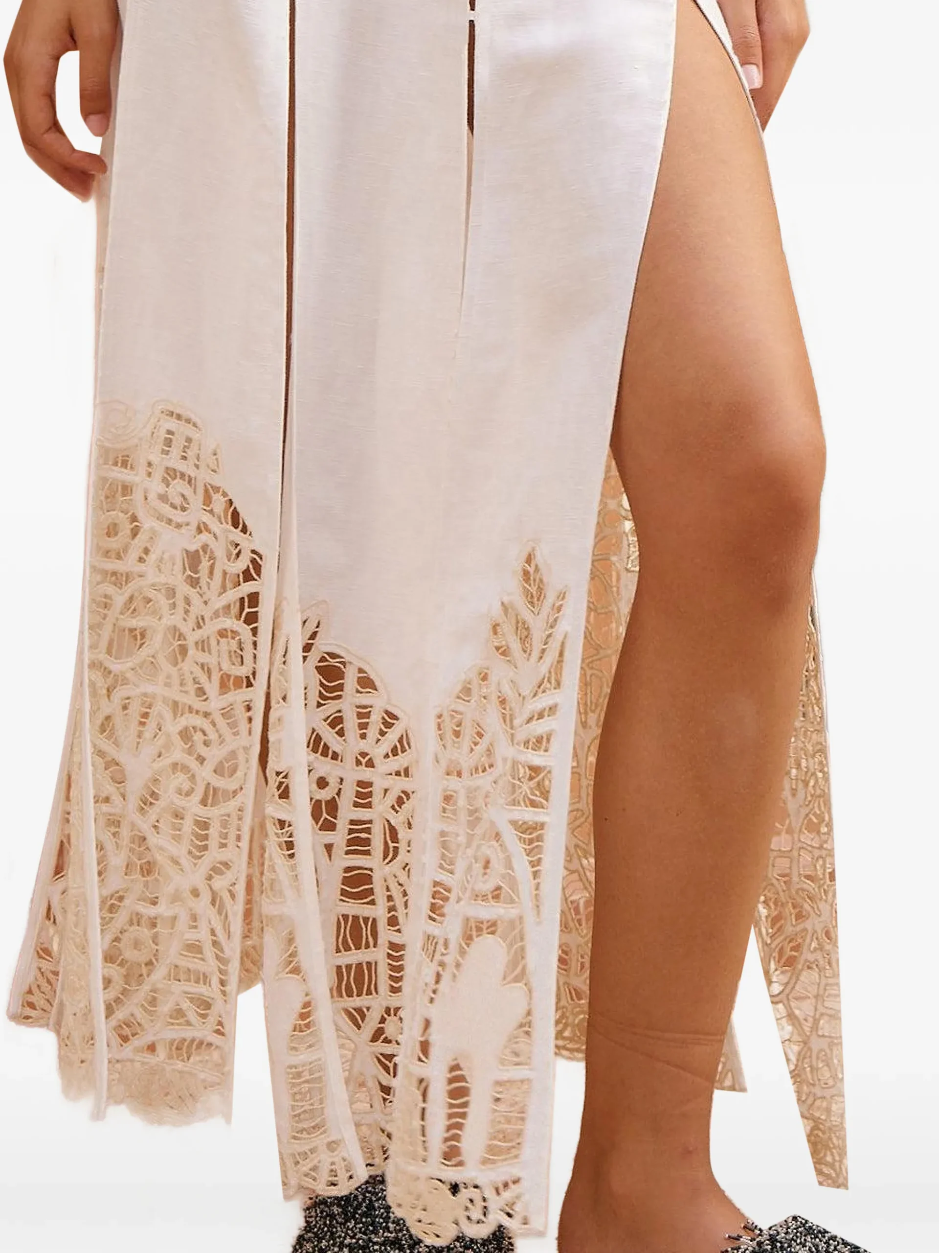 Fusta Alemais Rosemary embroidered alba, cu detalii brodate, slit si constructie pe panouri. 66% in 34% vascoza