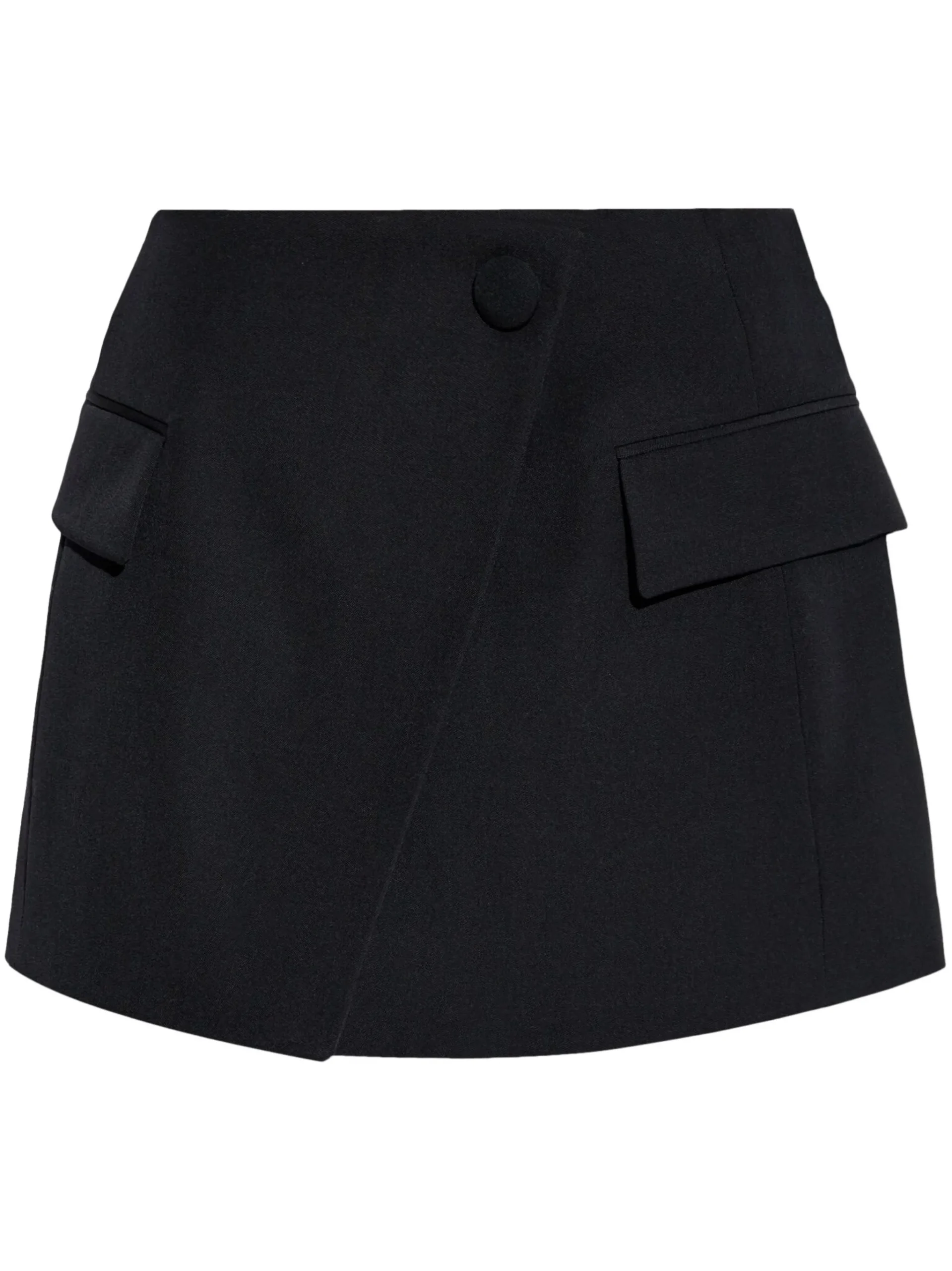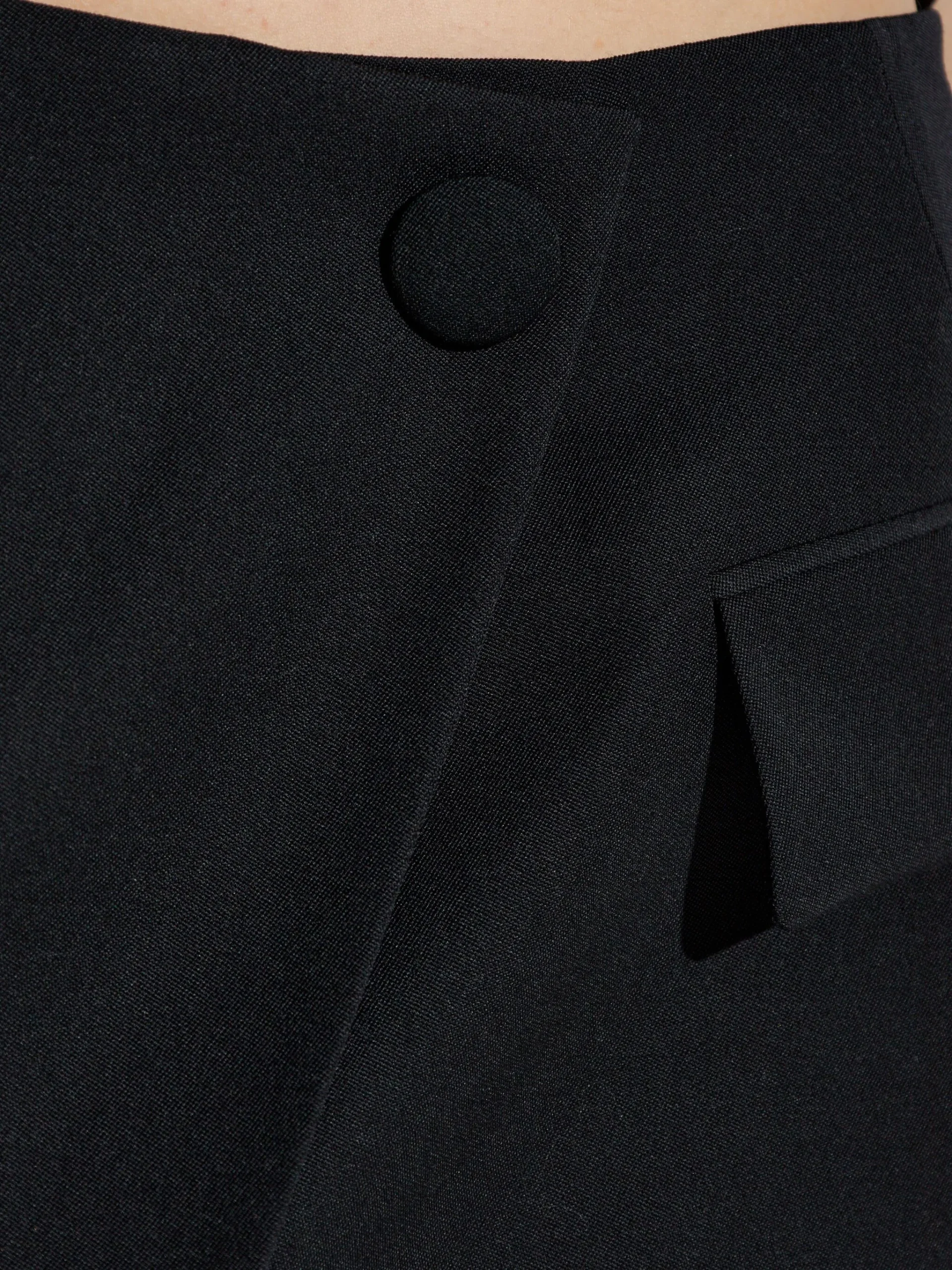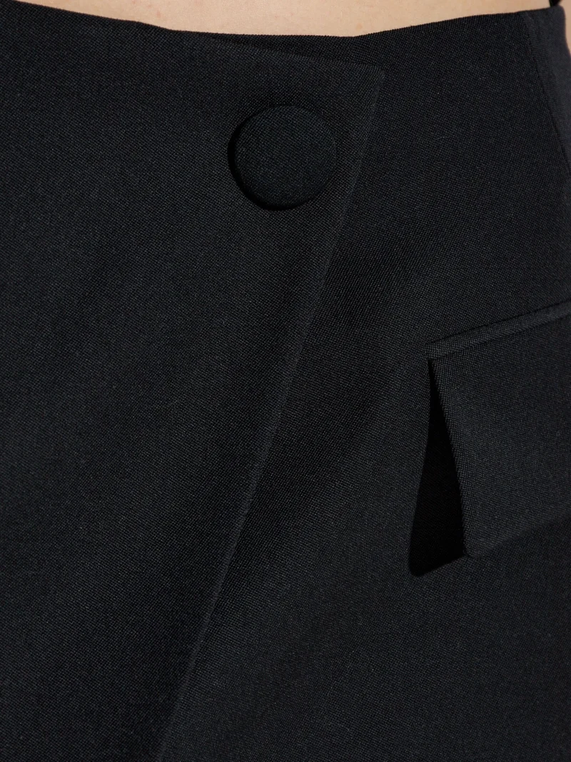 Fusta Balmain flap-pocket neagra, inchidere cu nasture frontal, buzunare cu clape duble, fante laterale. Potrivita pentru sezonul primavara/vara.100% lana