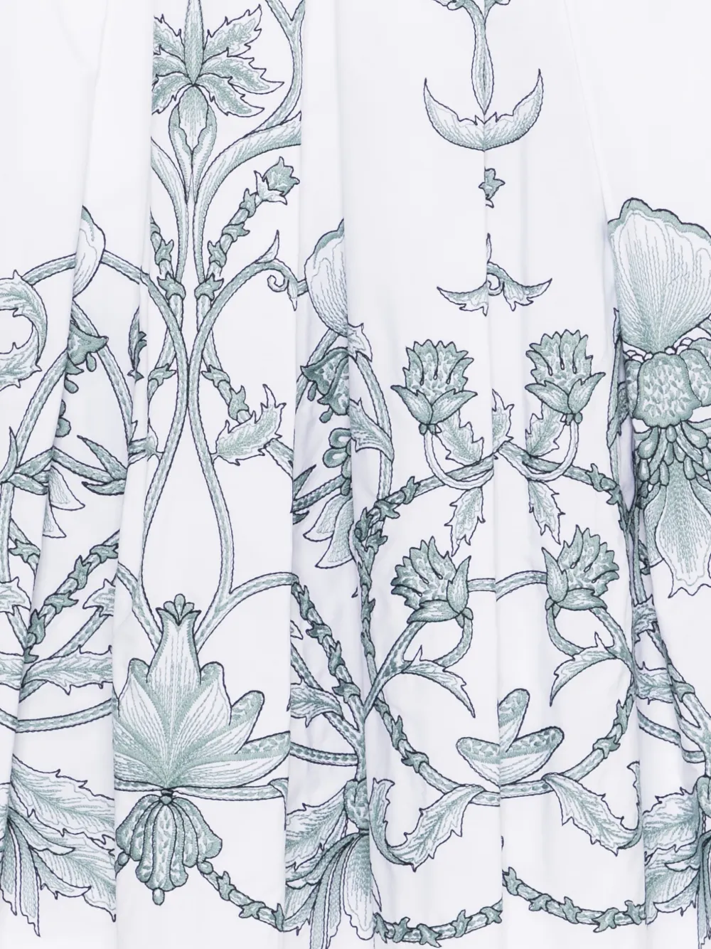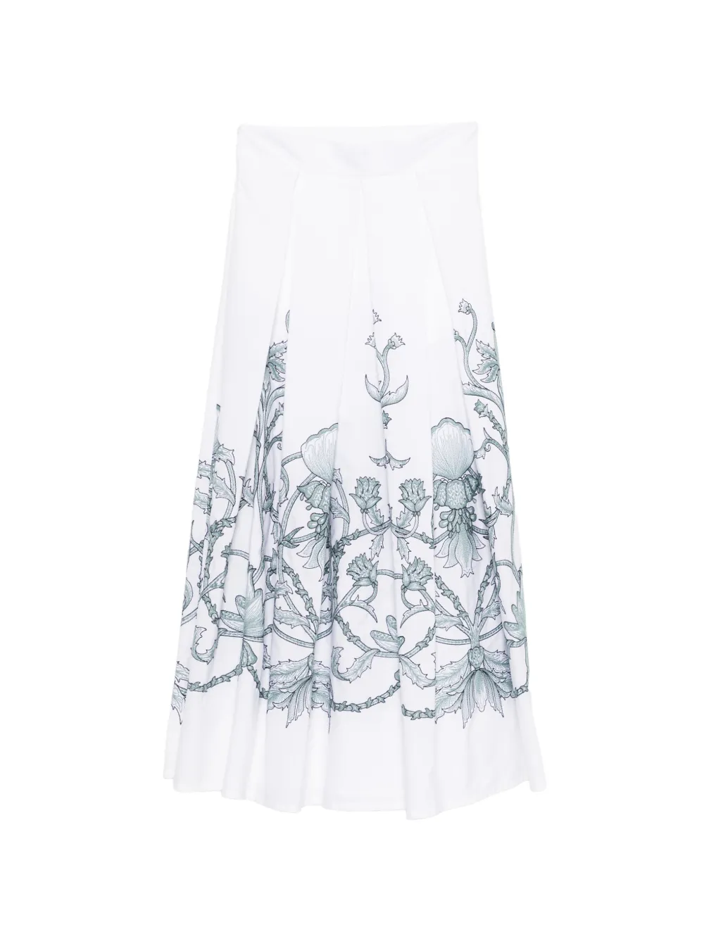 Fusta Eleventy Floral Print alb, cu talie inalta, inchidere cu fermoar pe lateral, plisata integral, grafica florala imprimata si tiv drept. Potrivita pentru sezonul primavara/vara. 100% bumbac.