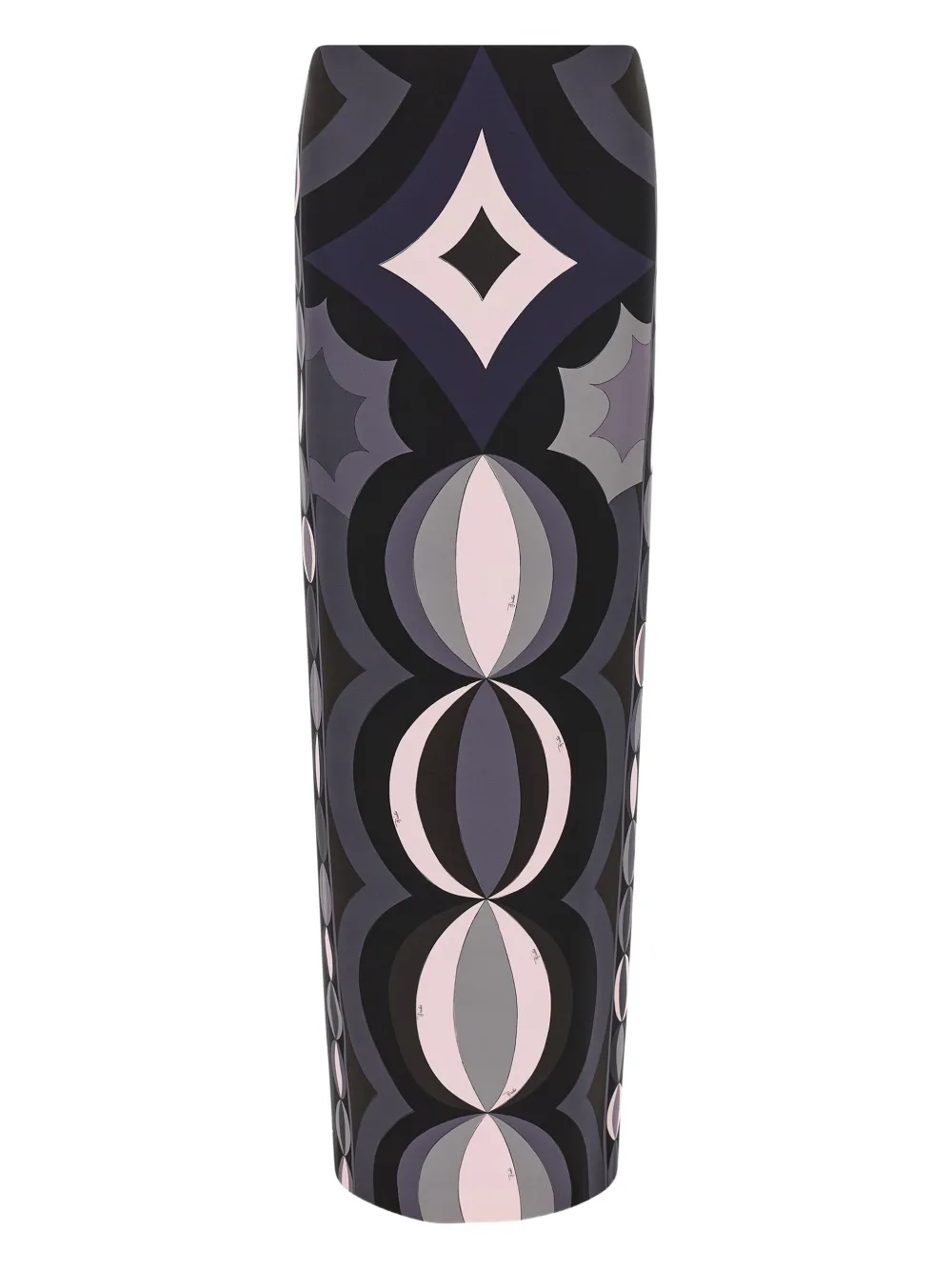 Fusta maxi PUCCI Iride-Print multicolor, realizata din matase, cu inchidere fermoar pe laterala, grafica Iride si logo Pucci imprimate si tiv drept. Potrivita pentru sezonul toamna/iarna. 100% matase