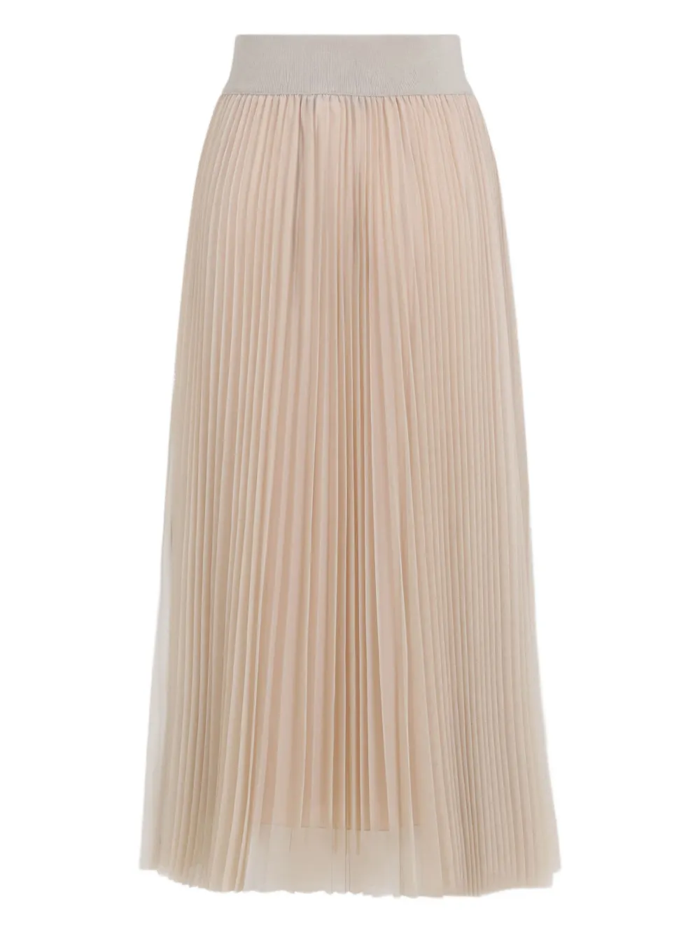 Fusta midi Fabiana Filippi Pleated bej, cu talie inalta si elastica, lungime medie, plisata integral si cu tiv drept. Potrivita pentru sezonul toamna/iarna. 100% poliester.