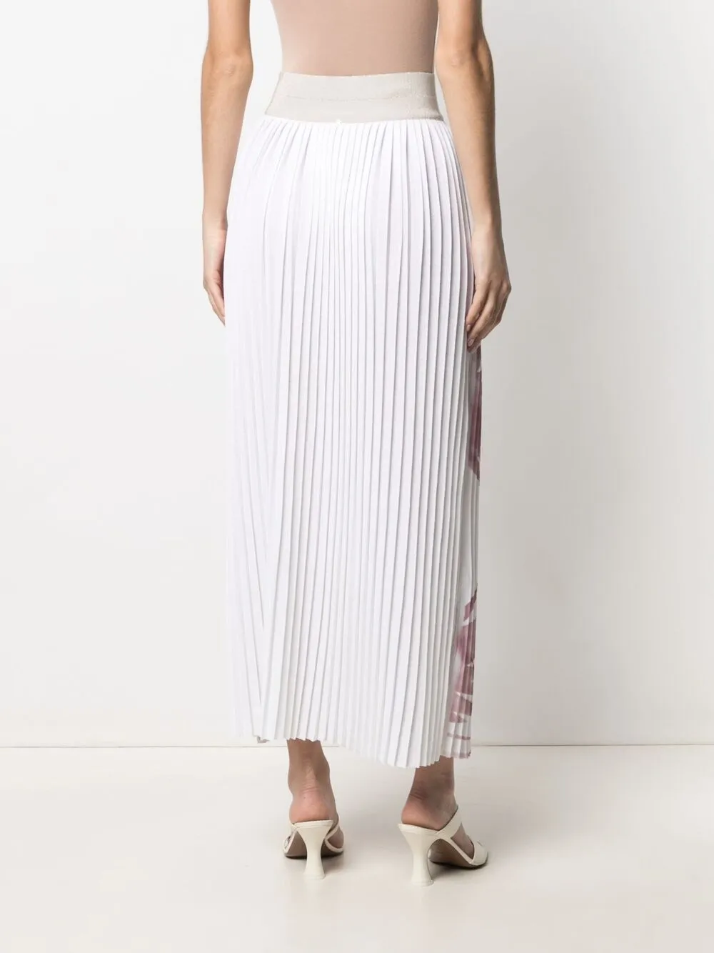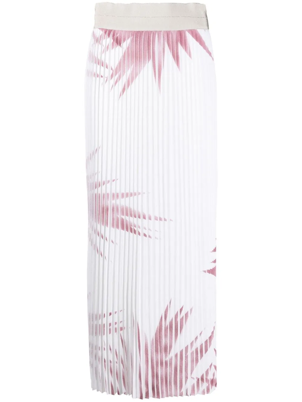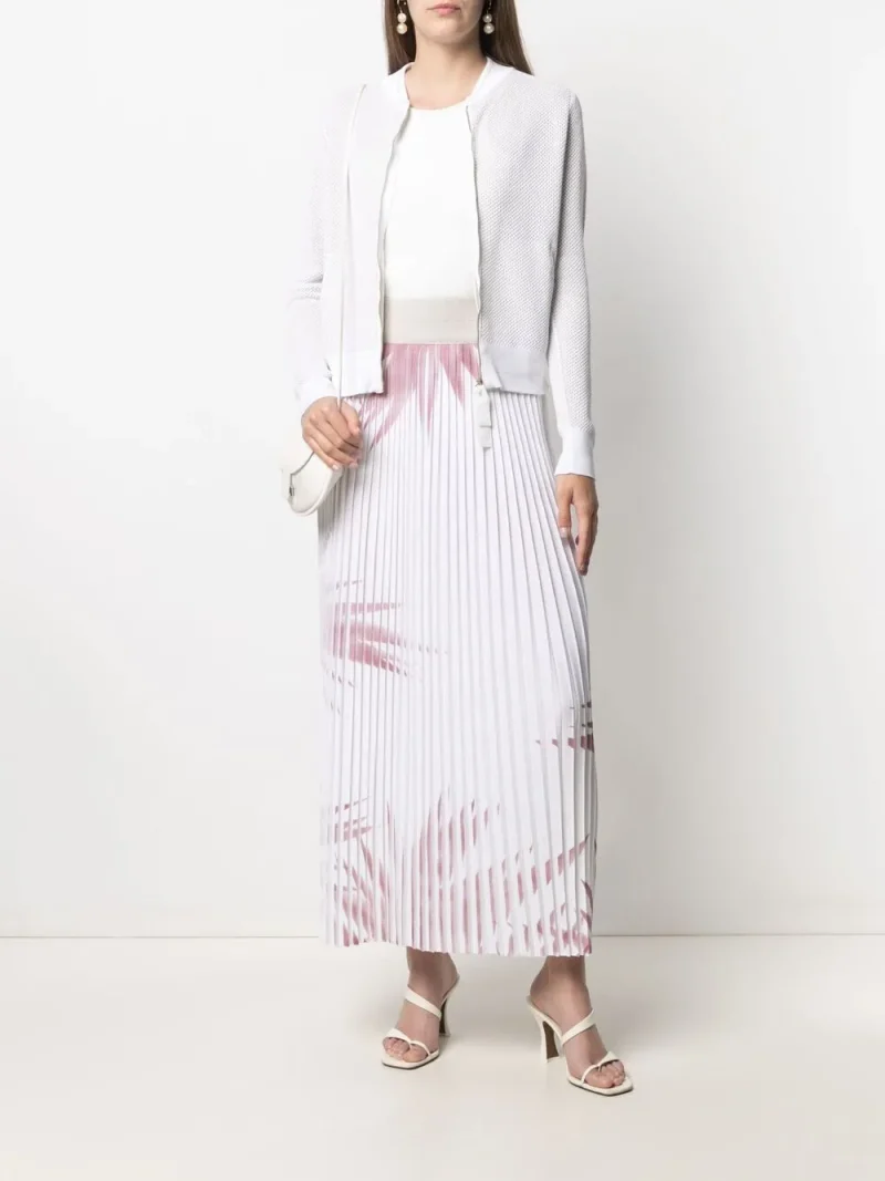 Fusta midi Lorena Antoniazzi Palm Tree-Print Pleated alb
