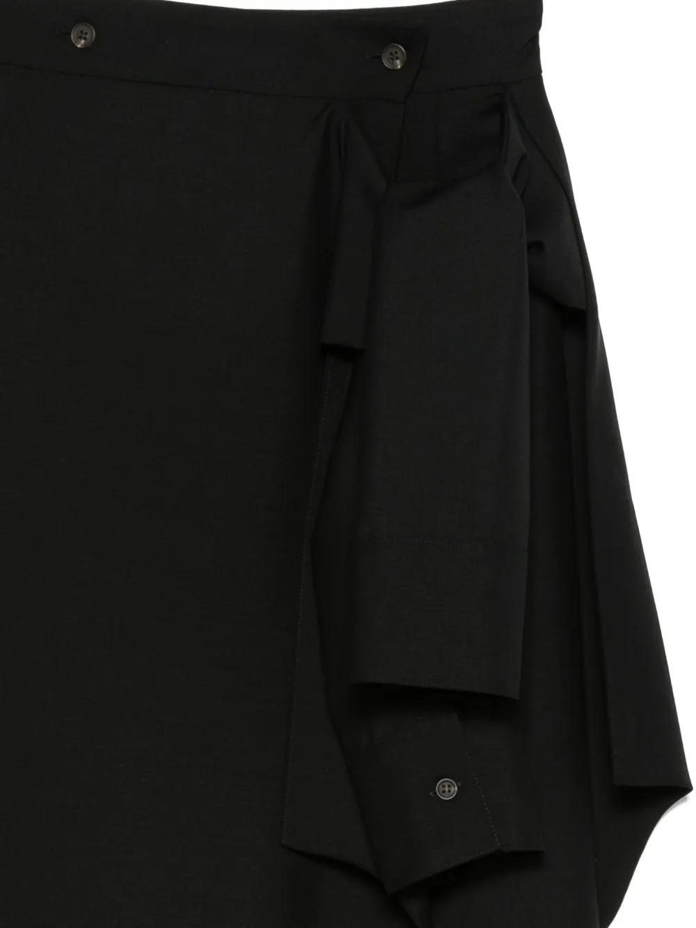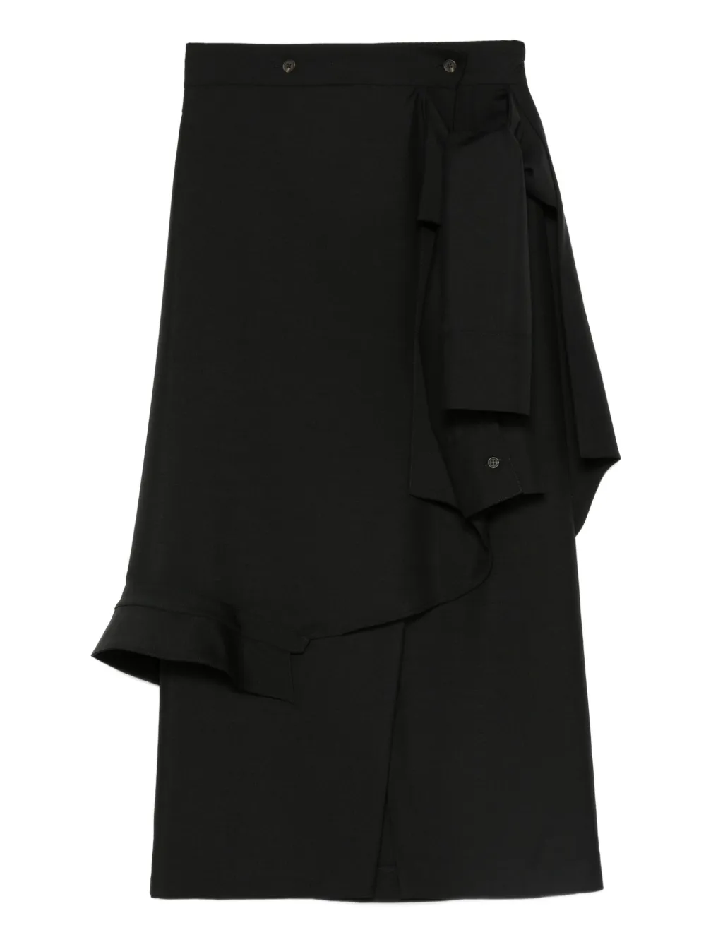 Fusta midi Rohe Ruffled Asymmetric negru, din lana, cu inchidere nasturi, lungime variabila cu taieturi si straturi suprapuse, volane decorative si tiv asimetric. Potrivita pentru sezonul toamna/iarna. 84% lana; 16% mohair.