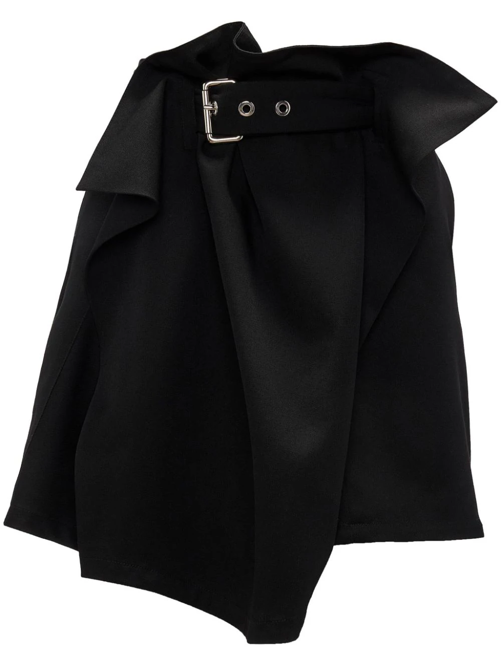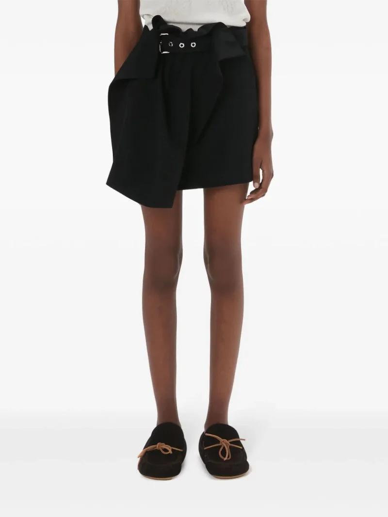Fusta mini JW Anderson Asymmetric Draped negru, din lana, design drapat, cu talie medie, inchidere curea textila si tiv asimetric. Potrivita pentru sezonul toamna/iarna. 100% lana.