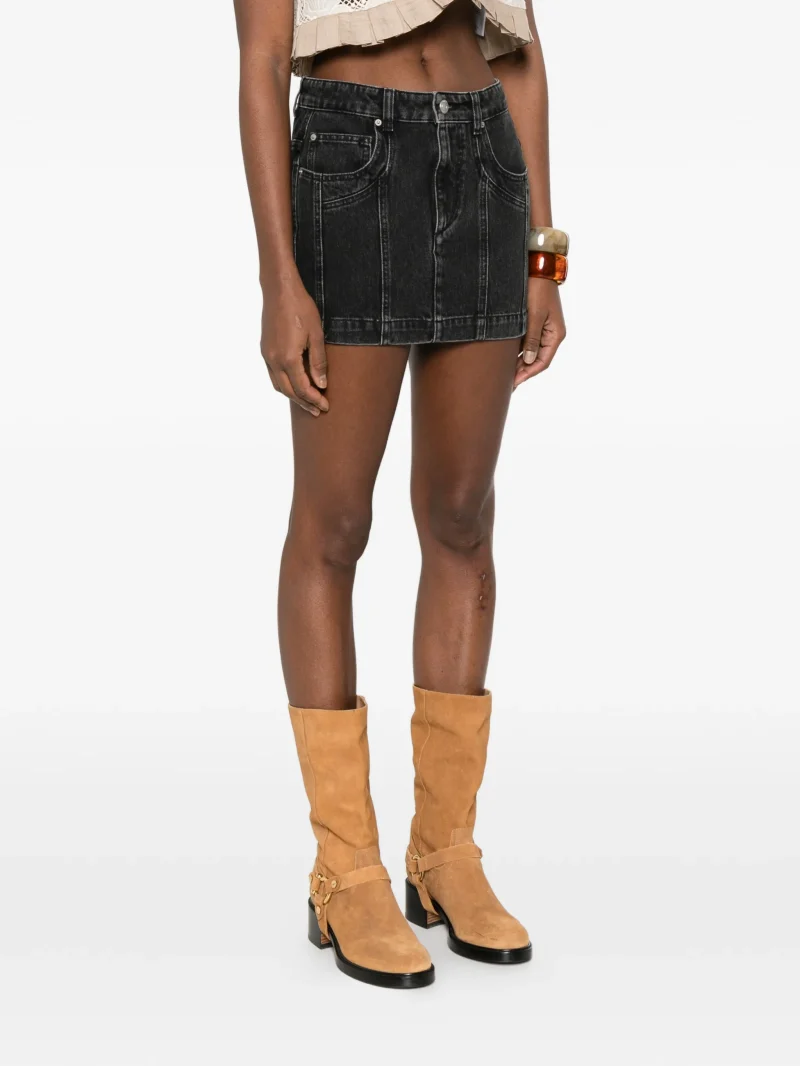 Fusta mini Marant Etoile denim neagra, cu design clasic cu cinci buzunare si gaici pentru curea. 100% bumbac