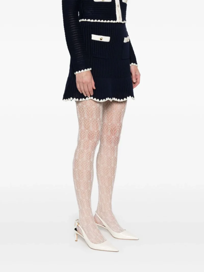Fusta mini Self-Portrait Crochet-Knit bleumarin