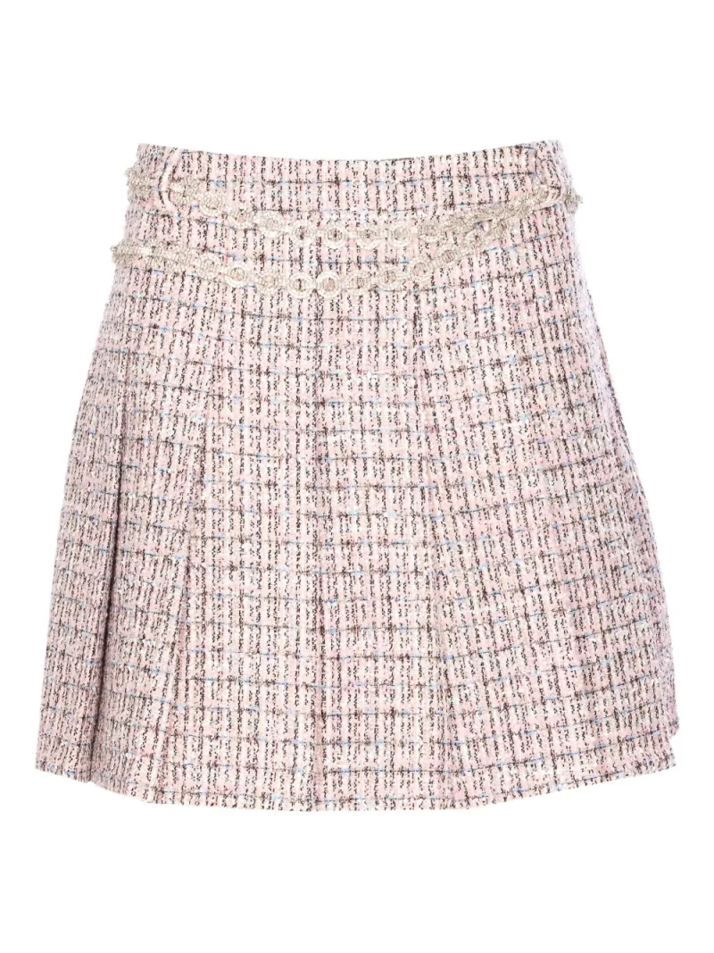 Fusta mini Self Portrait crystal-embellished roz, inchidere cu fermoar, curea cu cristale plisate, lungime mini.10% lana 85% poliester 5% vascoza