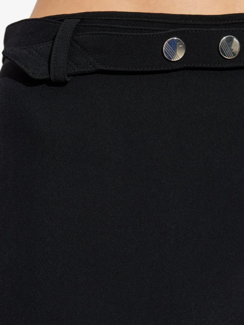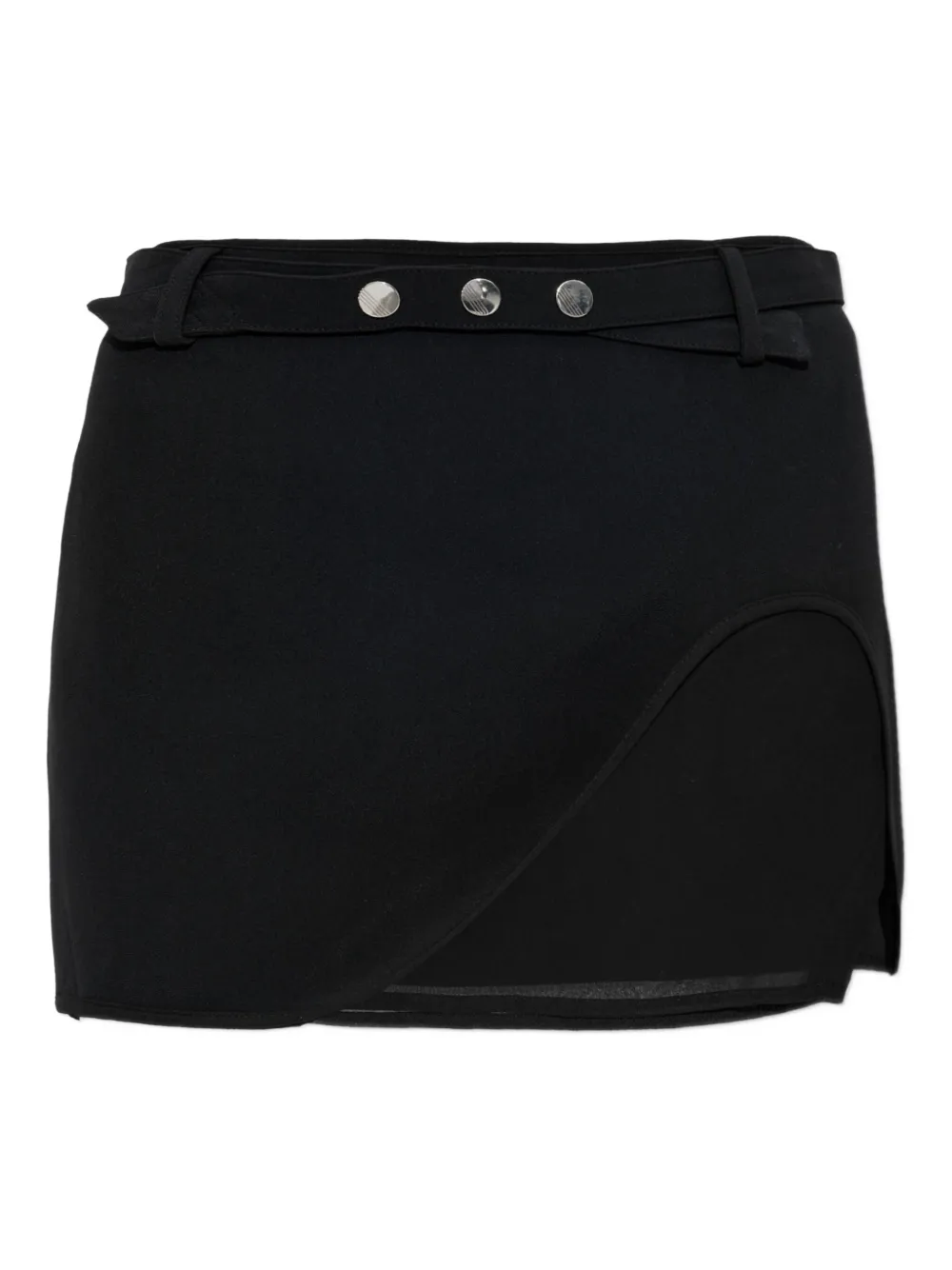 Fusta mini The Attico Belted negru, design cu panou asimetric transparent, curea in jurul taliei si tiv drept. Potrivita pentru sezonul toamna/iarna. 50% acetat; 50% viscoza.