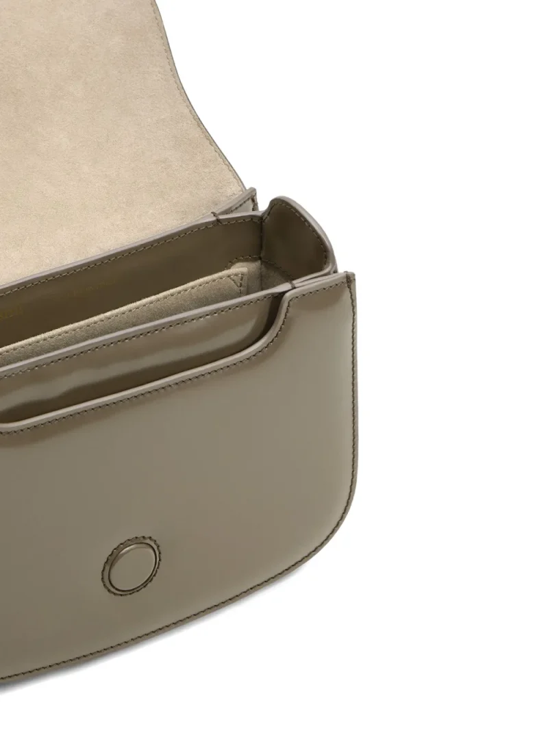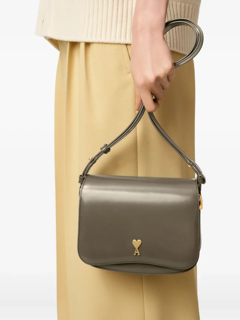 Geanta Ami Paris Black Glazed Leather Paris Paris gri, unisex, confectionata din piele cu efect glazurat, bareta de umar ajustabila, compartiment central cu buzunar aplicat, feronerie aurie, logo Ami metalic aplicat pe partea superioara si captuseala din piele intoarsa de miel. Detalii: Latime- 20cm; Ianltime- 15cm ; Adancime- 4,5cm; 100% piele de miel; 100% piele de vitel.