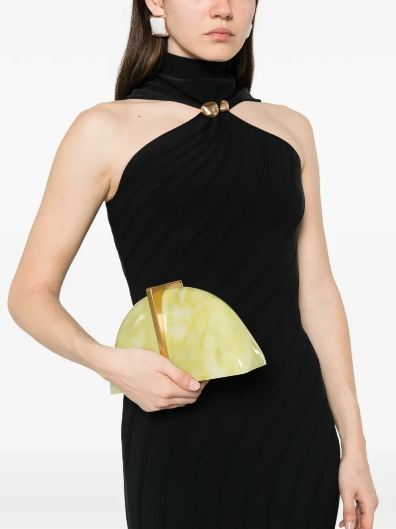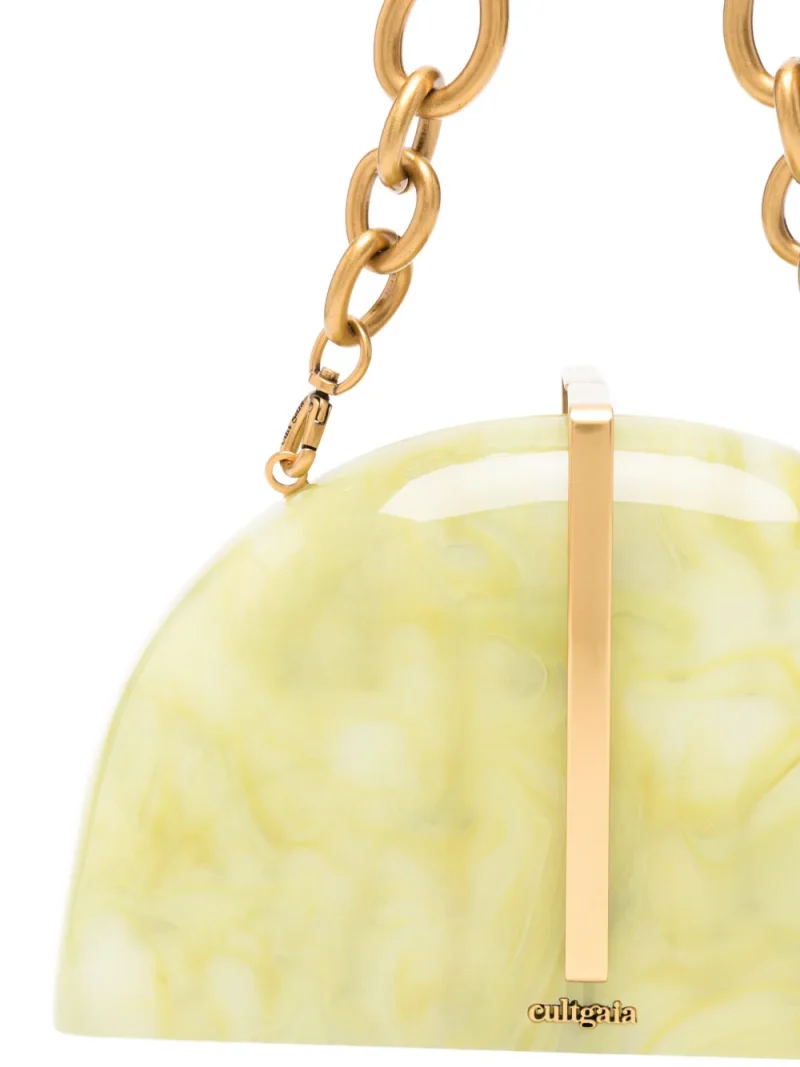 Geanta Cult Gaia Laguna Marbled Clutch verde, realizata din acrilic, in forma de semiluna, cu inchidere magnetica, logo cult gaia metalic aplicat si bareta din chain link cu zale mari. 100% acrilic.