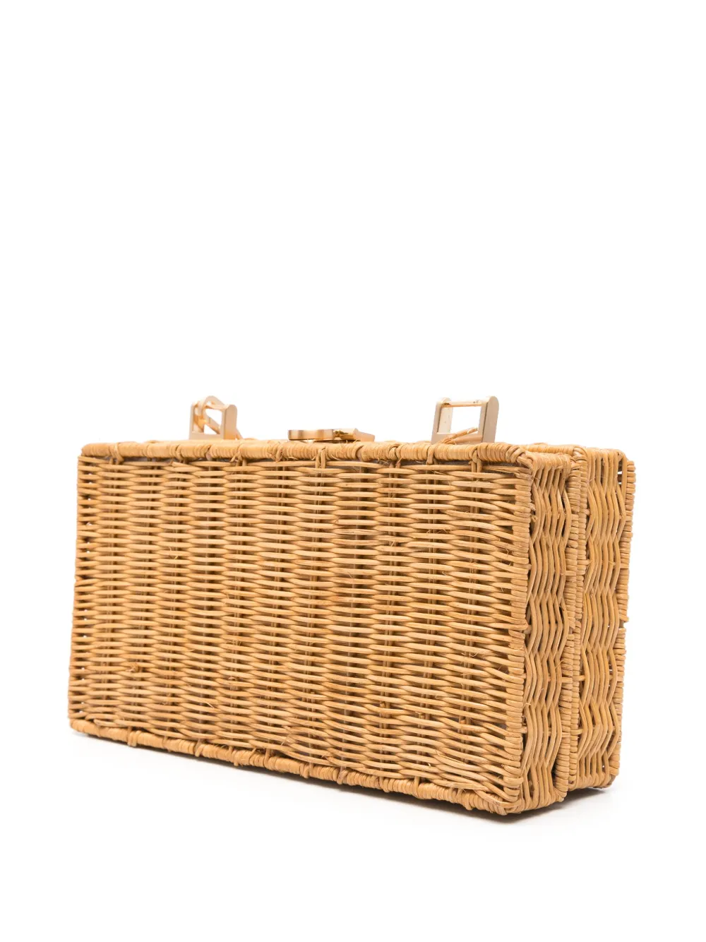 Geanta Cult Gaia The Backgammon bej, tip cutie, cu structura decorativa si inspiratie vintage si compartiment cu insertii decorative ce reproduce grafic jocul backgammon. 100% paie.