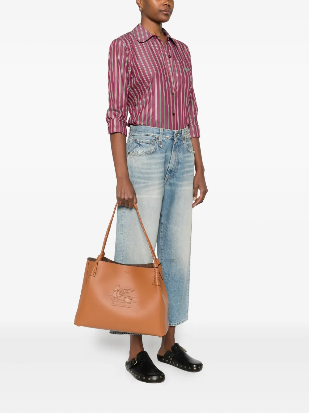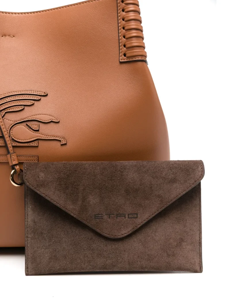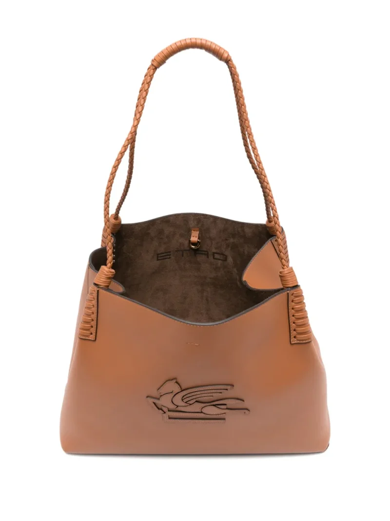 Geanta Etro Libra Tote maro, cu forma drepunghiulara, barete pentru umar cu design impletit, logo Etro gravat pe partea din fata si inchidere carabina. 100% piele de vitel.