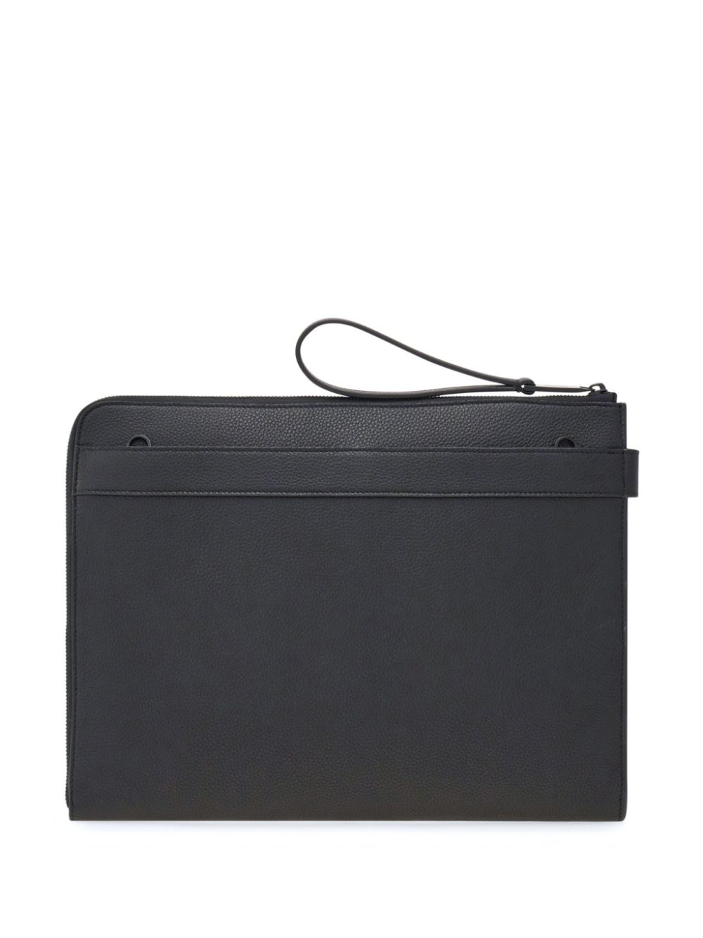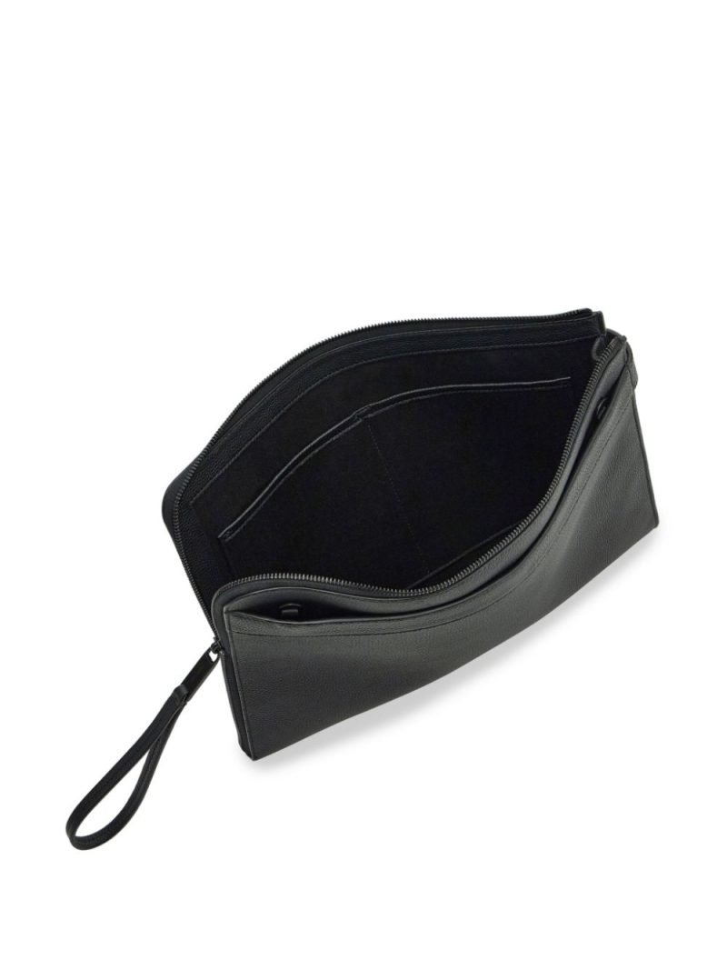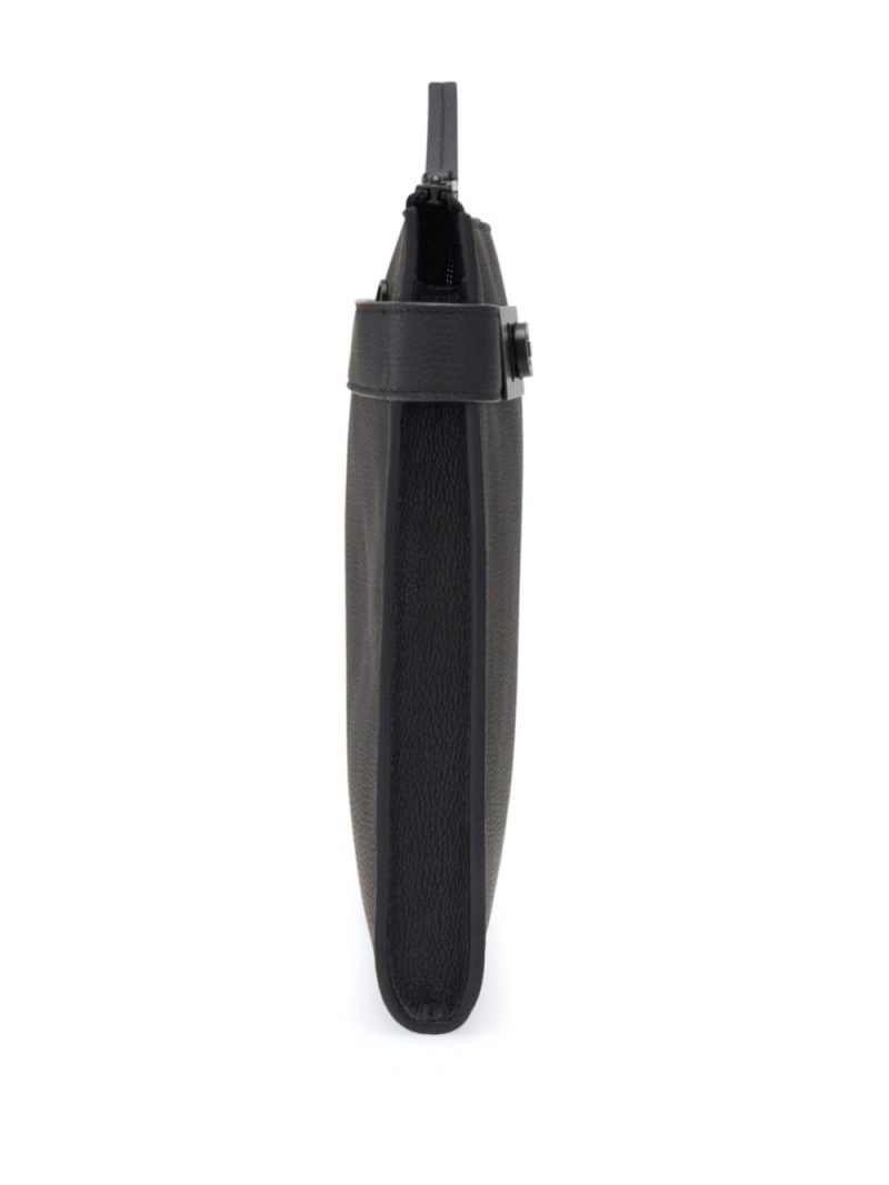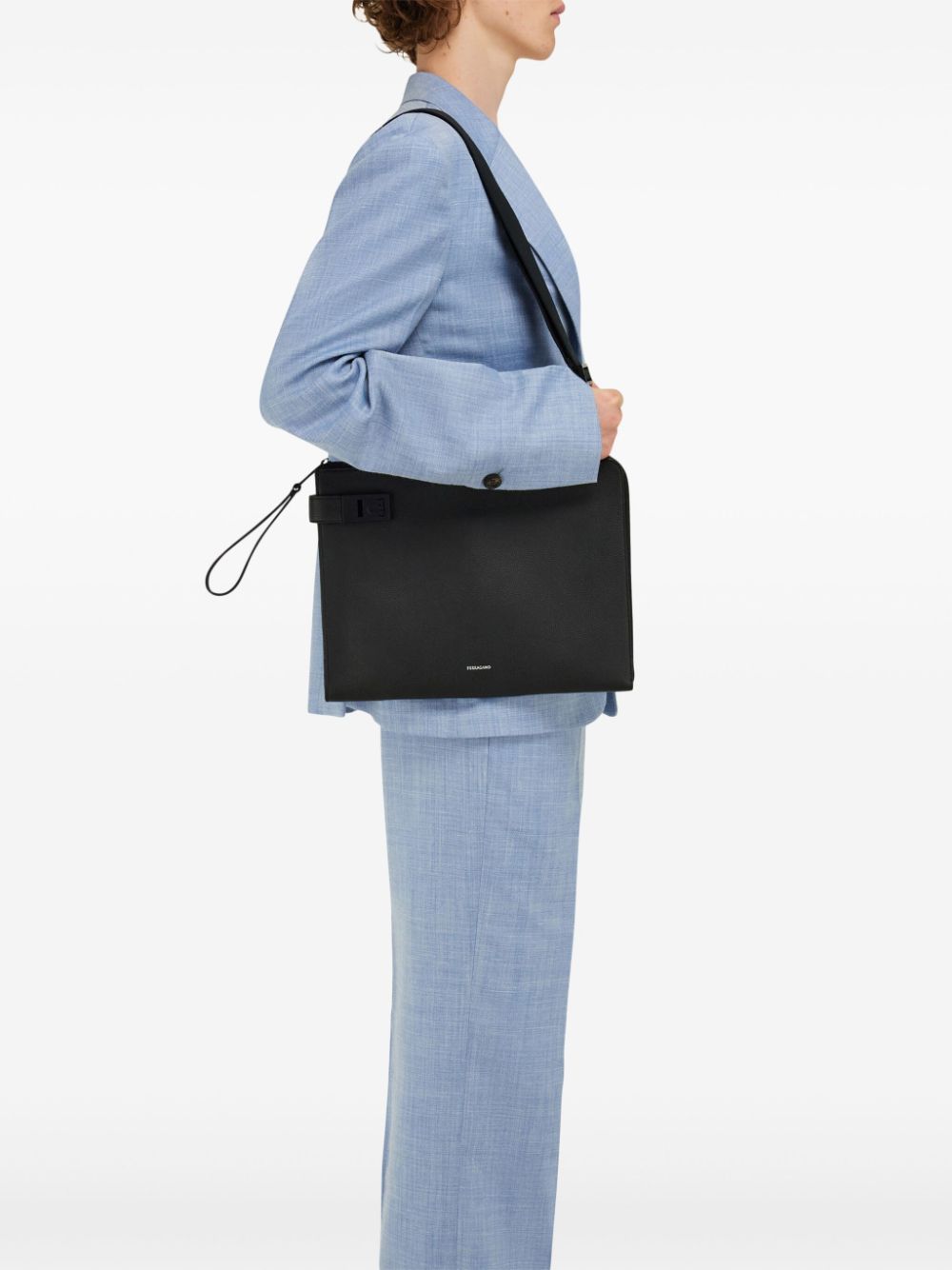 Geanta Ferragamo Gancini-Buckle Clutch negru, din piele, cu forma dreptunghiulara, inchidere cu fermoar, buzunare tip welt pe interior, buzunar exterior cu fermoar, curea de umar detasabila, logo metalic Gancini si logo Ferregamo gravat.