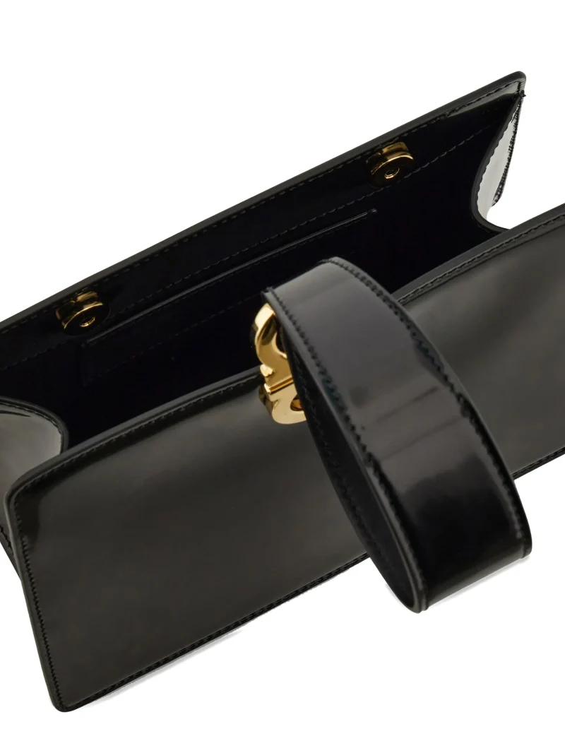Geanta Ferragamo geometric negru, maner superior din piele, forma geometrica, element metalic auriu, curea detasabila. 100% piele