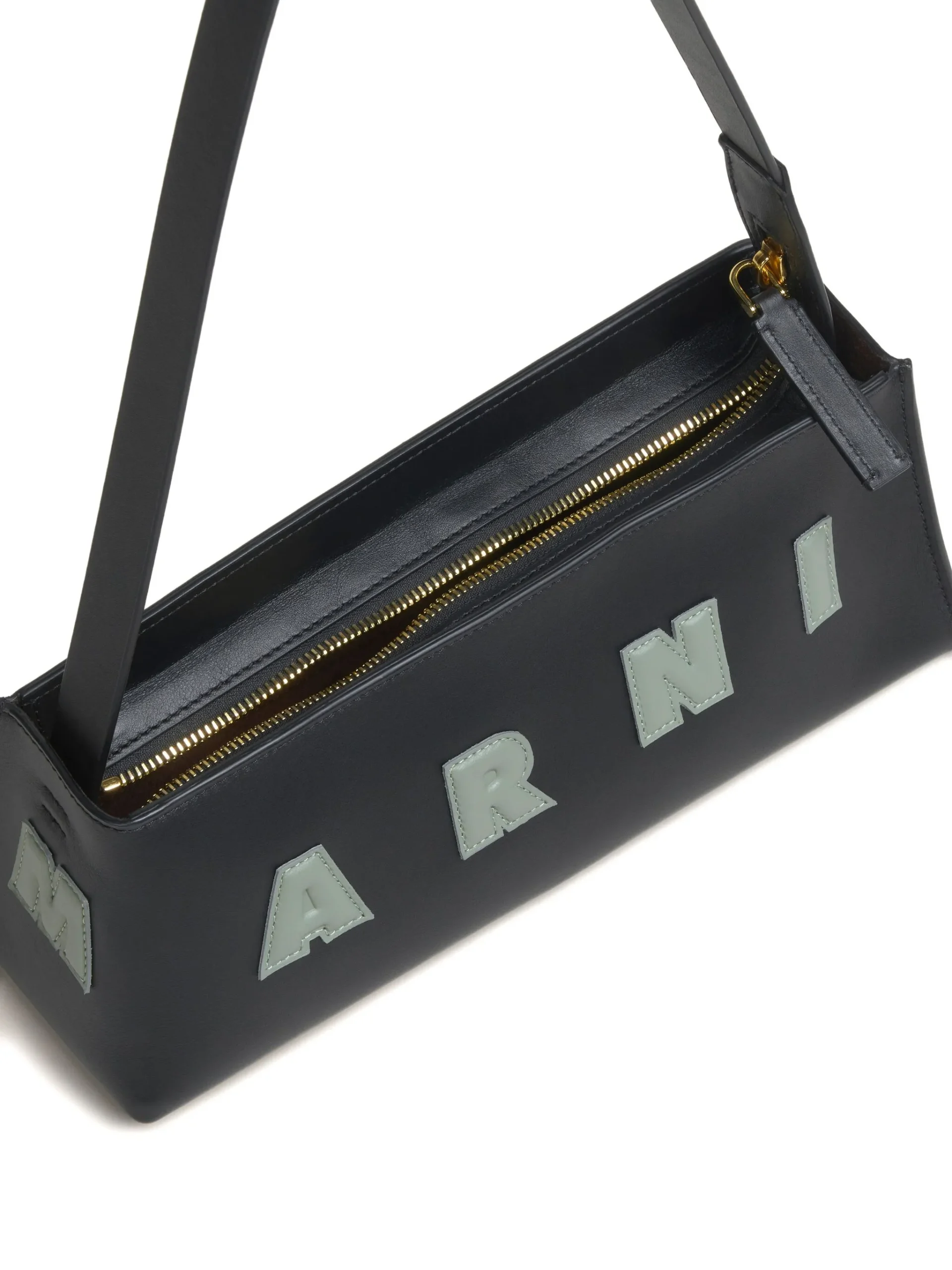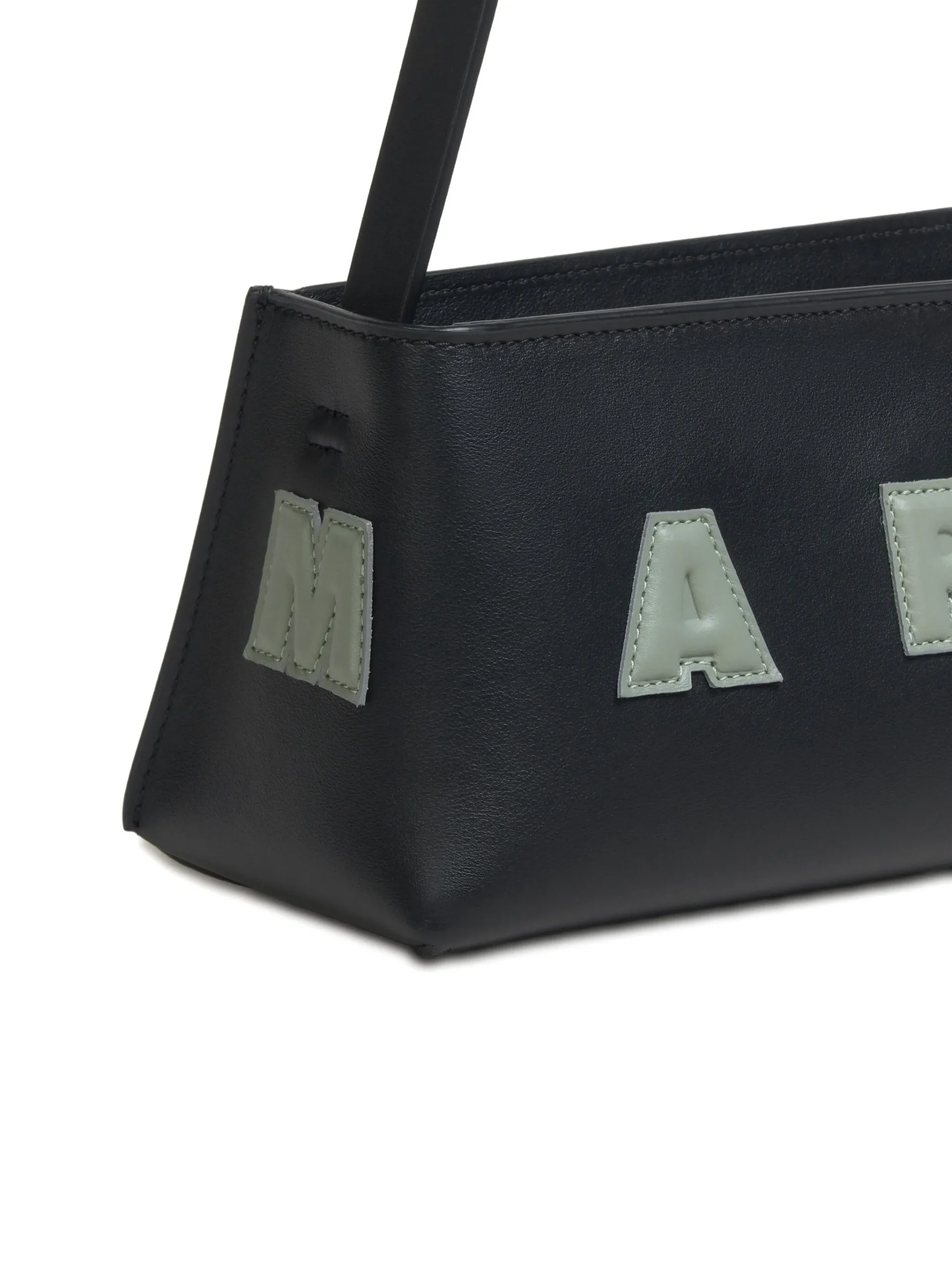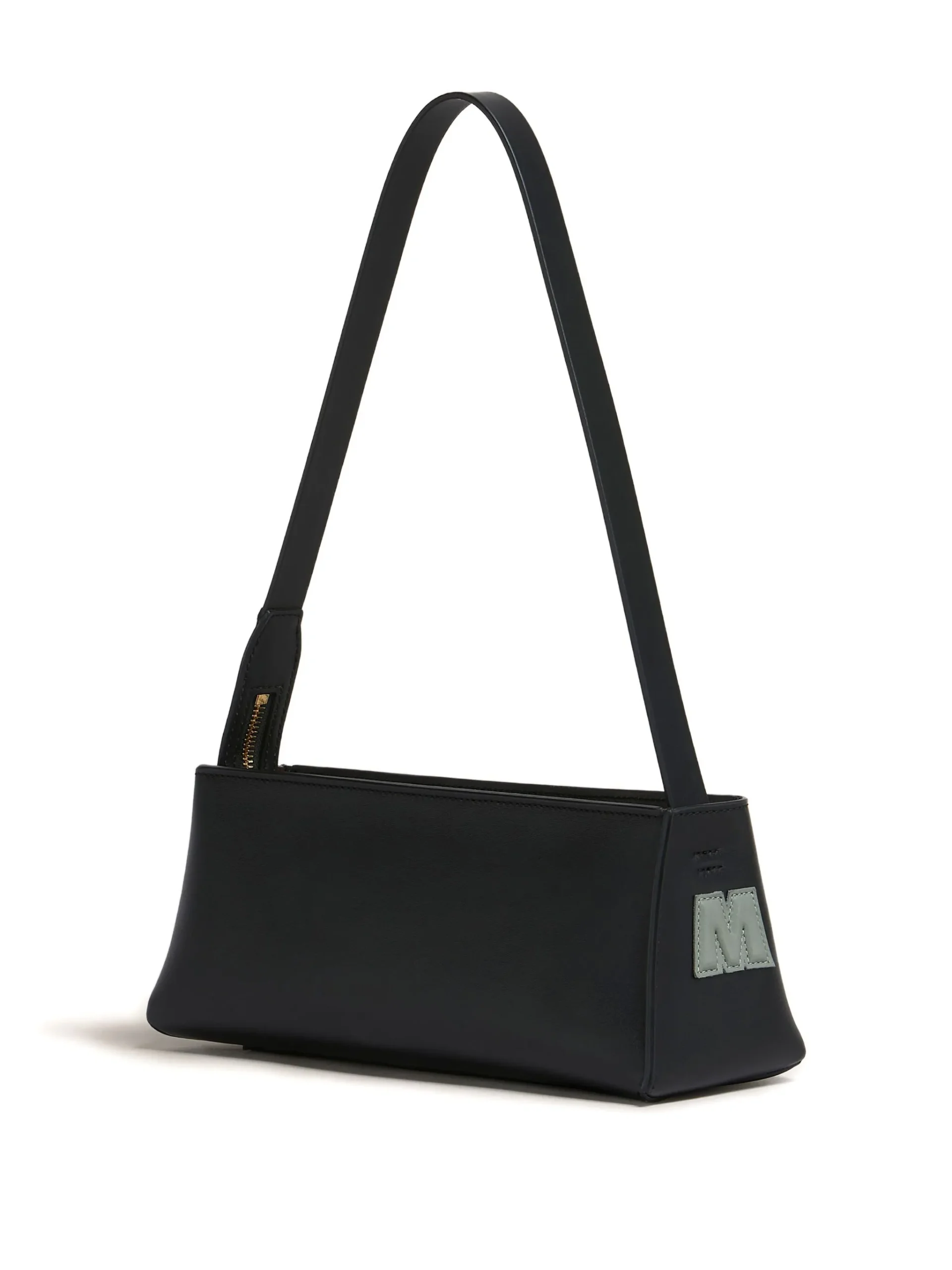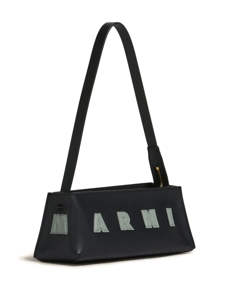 Geanta Marni logo-appliqué negru, logo inscriptionat pe partea din fata, curea de umar reglabila, inchidere cu fermoar. Adancime: 9cm, Inaltime:10,5 cm, Latime:28cm.100% piele