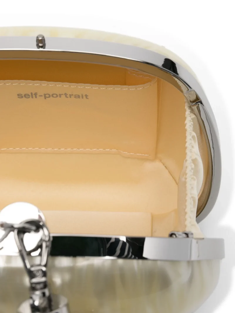 Geanta Self-Portrait Kids logo-appliqué clutch gri, prindere magnetica, curea detasabila, curea de umar, buzunar interior cu logo aplicat. 97% poliester 3% elastan