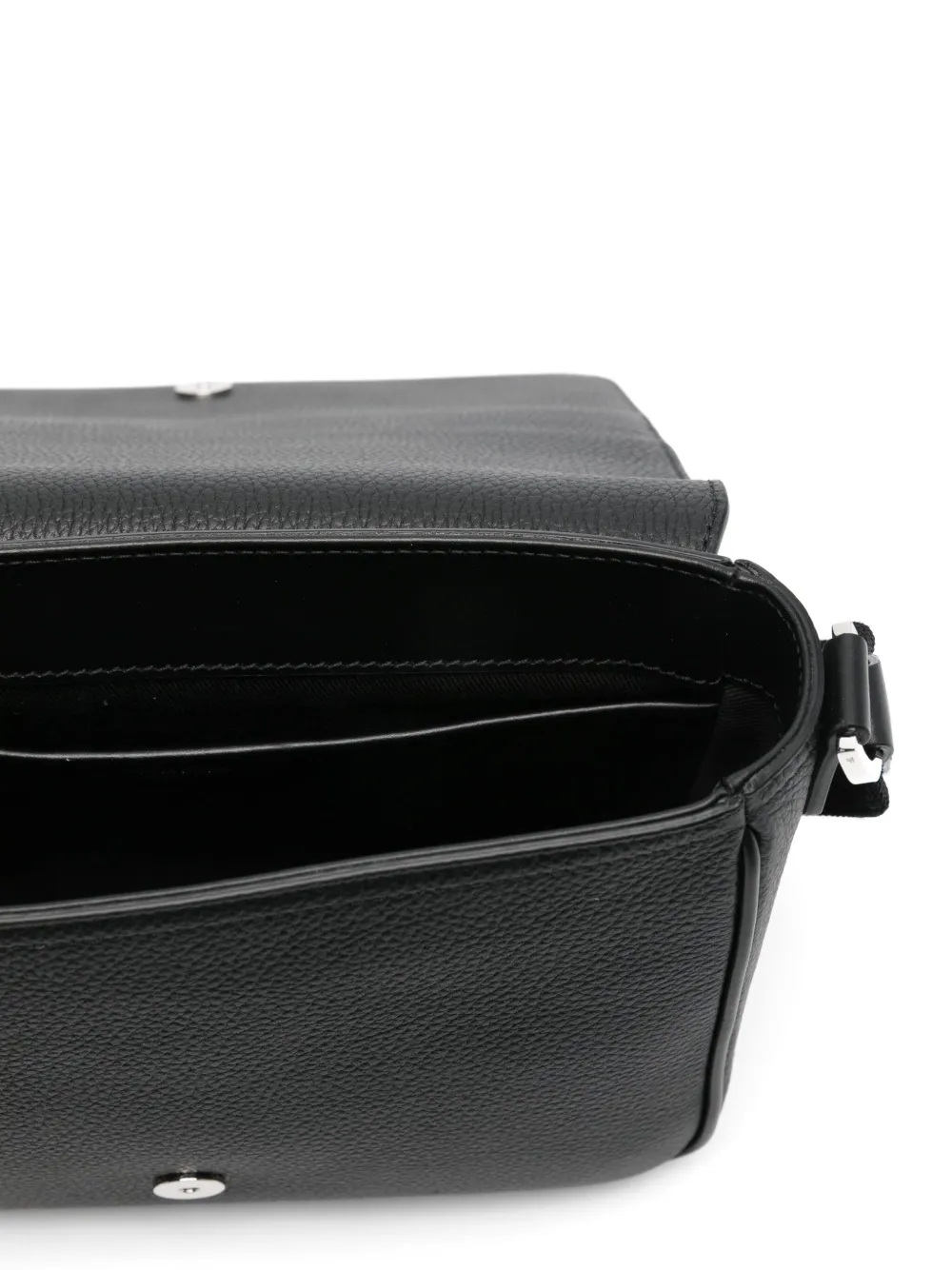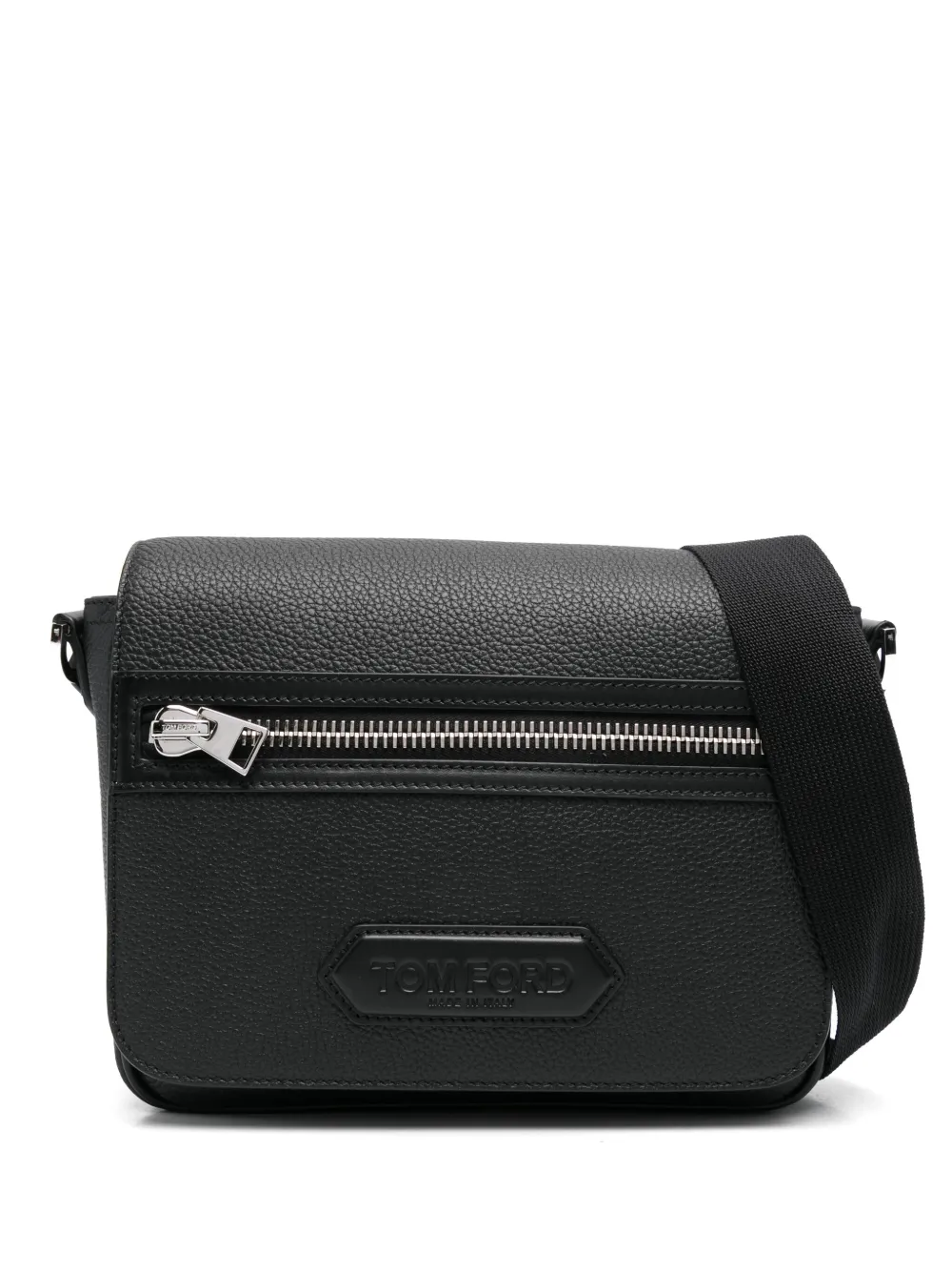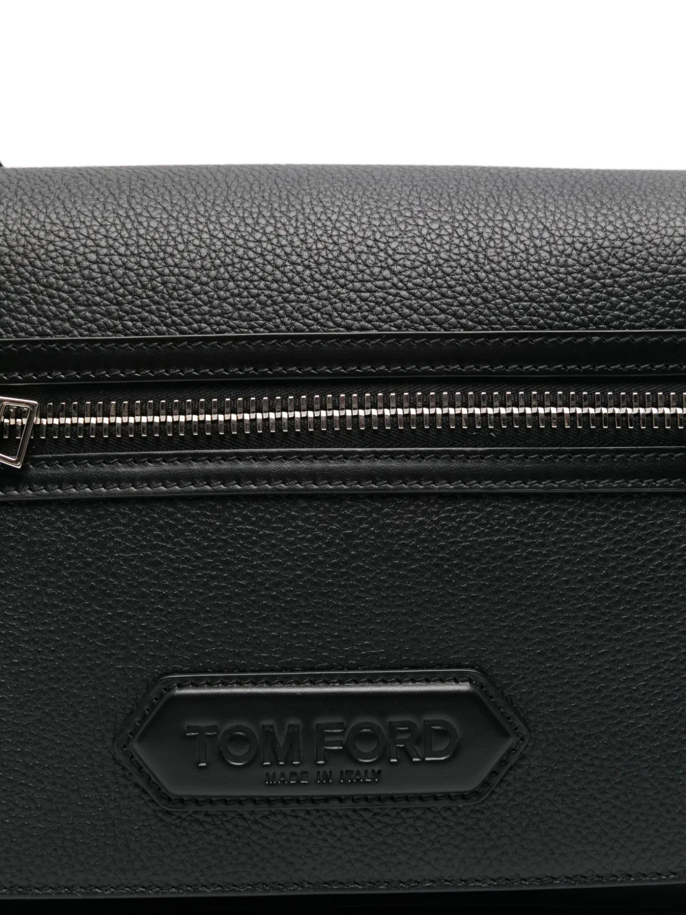 Geanta TOM FORD Leather Shoulder negru, din piele, cu inchidere clapeta, buzunar exterior cu fermoar, eticheta cu logo gravat cusuta, compartiment principal cu buuznar interior si bareta pentru umeri ajustabila. 100% alama; 100% piele; 10% acrilic; 90% bumbac.