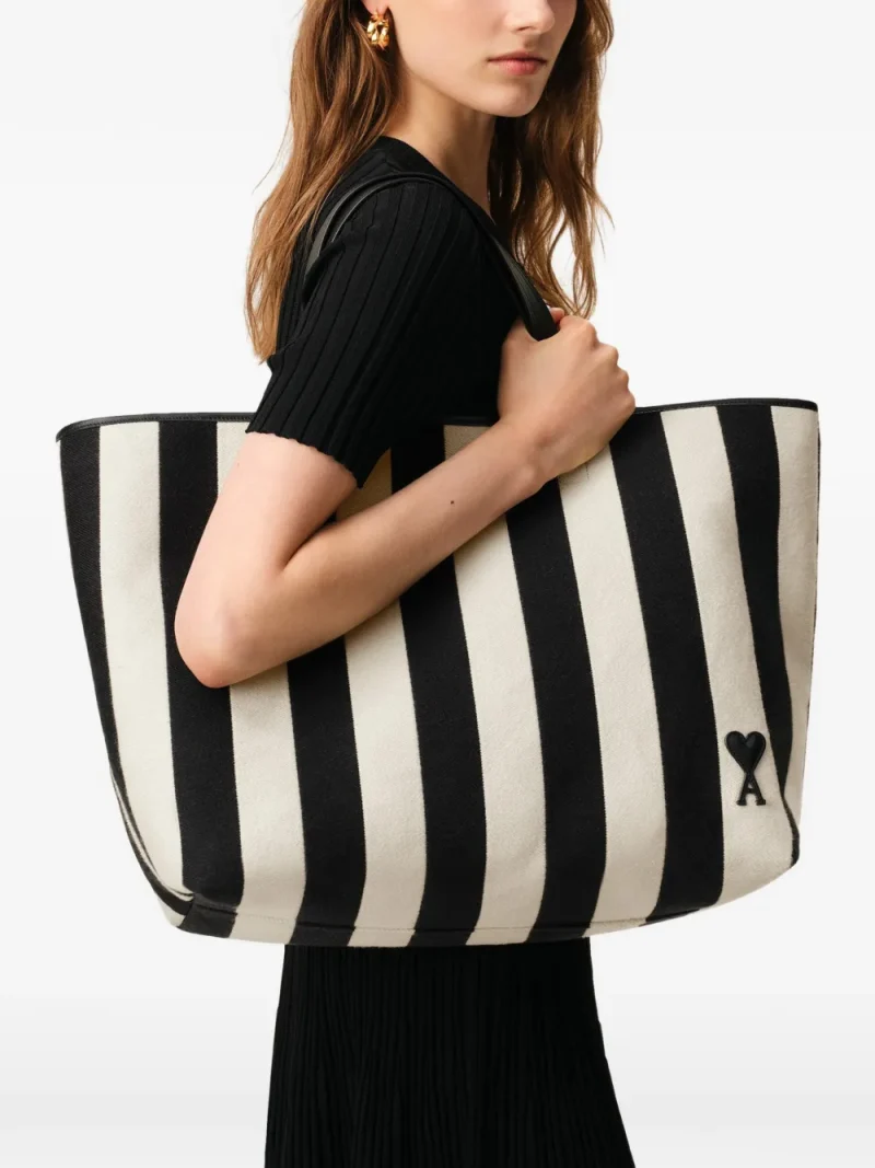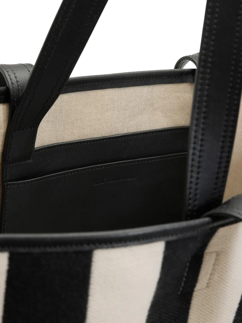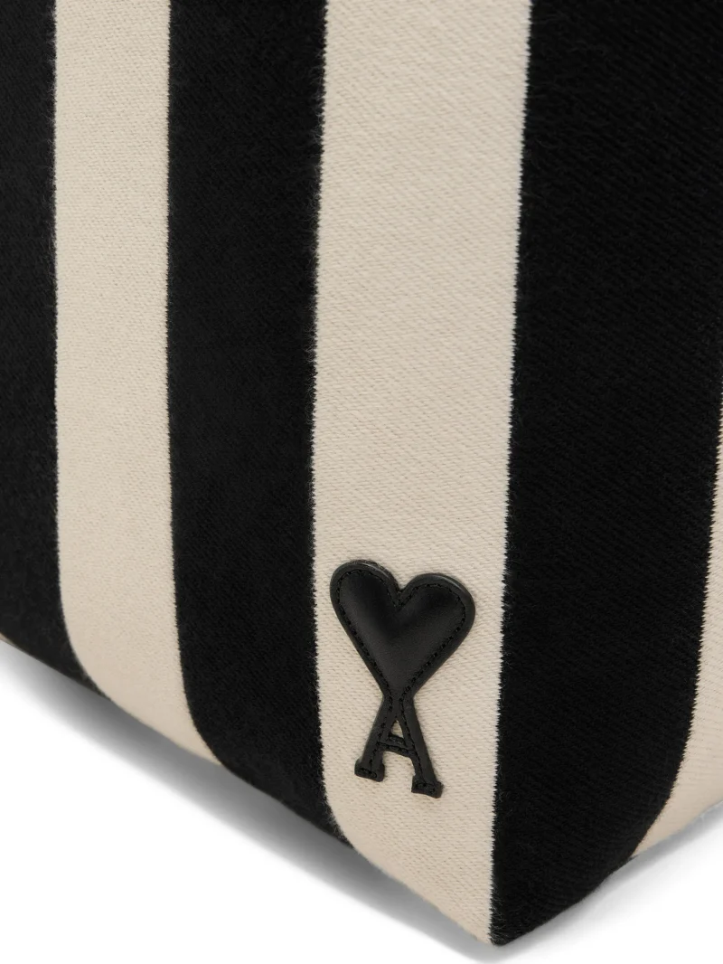 Geanta tote AMI Paris Large Ami De Coeur Striped bej
