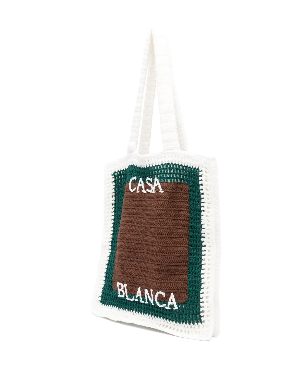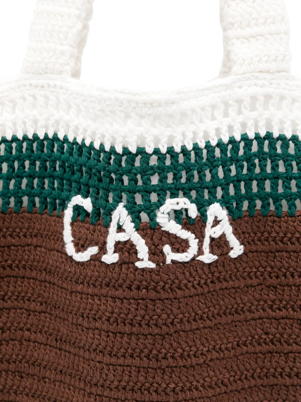Geanta tote Casablanca Tennis Crochet maro, din bumbac crosetat, cu manere circulare in contrast, compartiment principal si logo brodat. 100% lyocell. 100% bumbac.