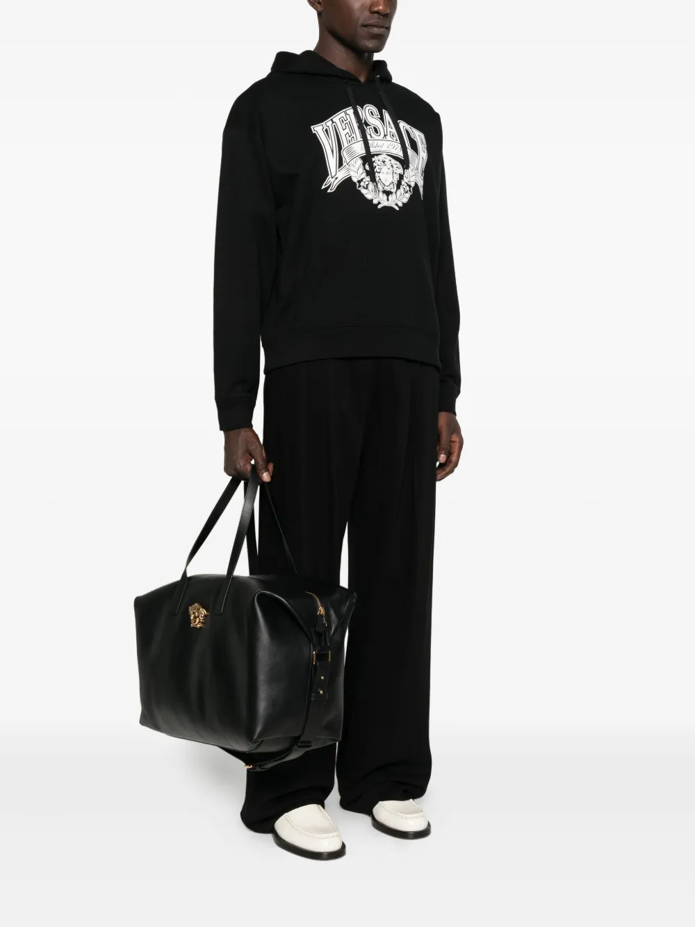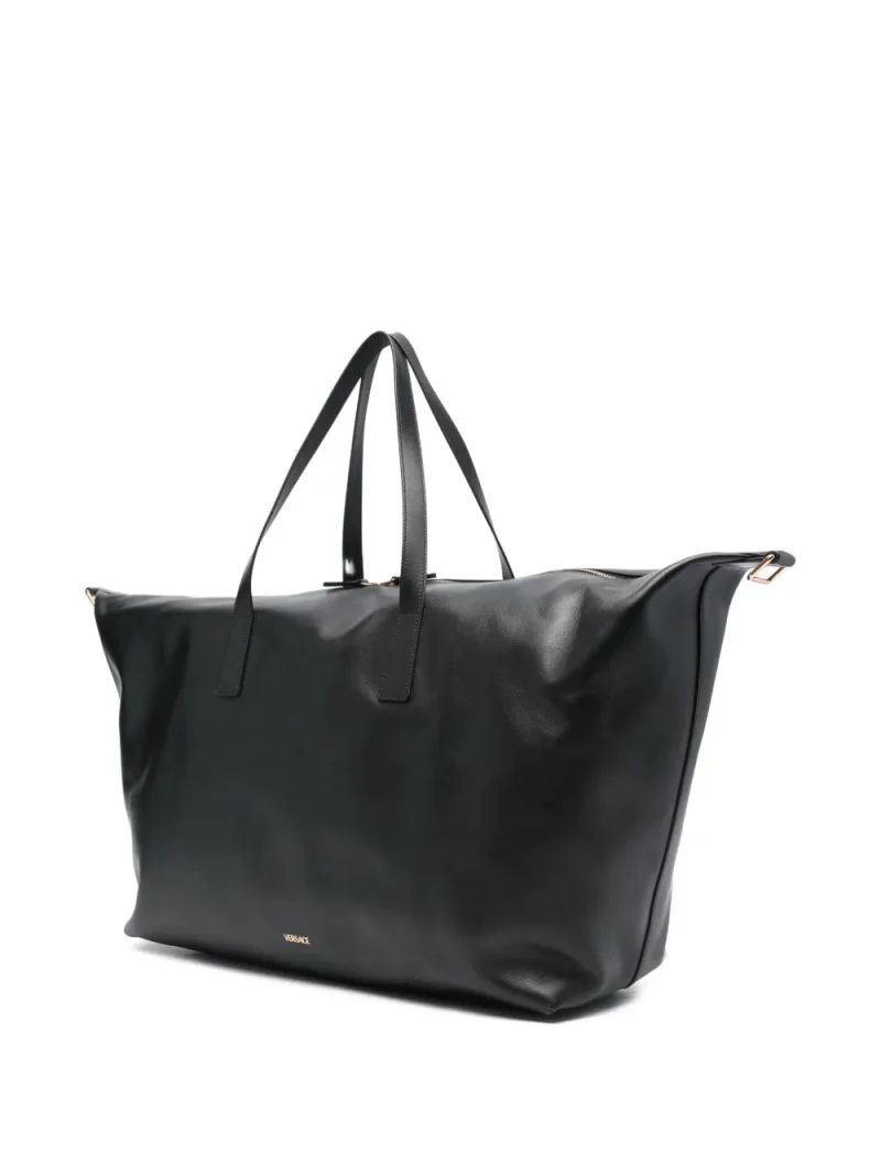 Geanta Versace La Medusa leather duffle negru, manere superioare, inchidere cu fermoar, curea de umar detasabila, placa cu Medusa Versace.100% piele