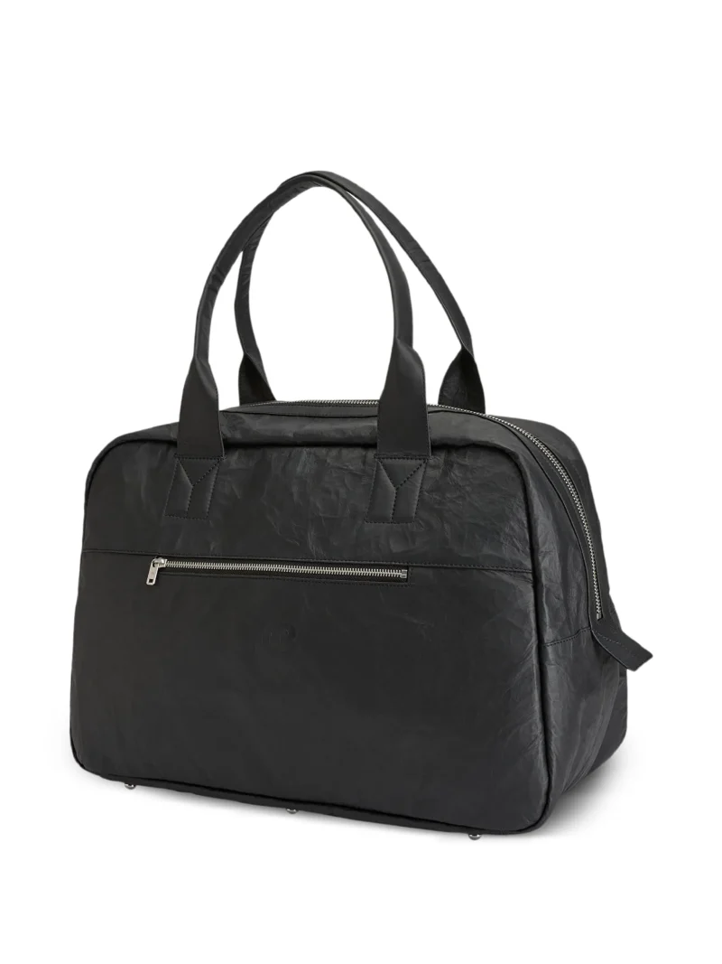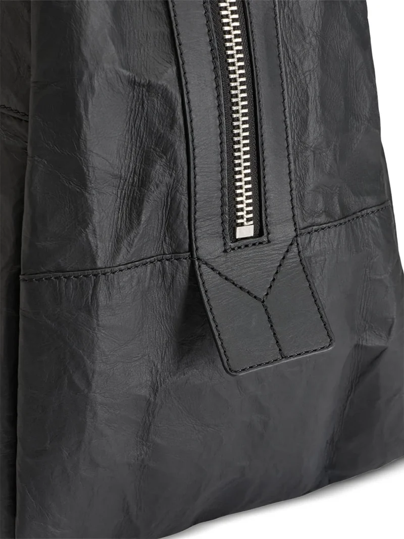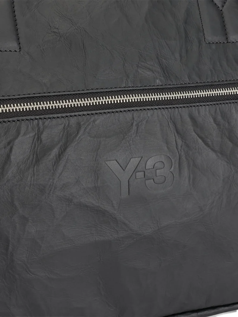 Geanta Y-3 logo-detail tote bag neagra, cu manere superioare, inchidere cu fermoar, detaliu logo si accesorii metalice argintii. 100% piele