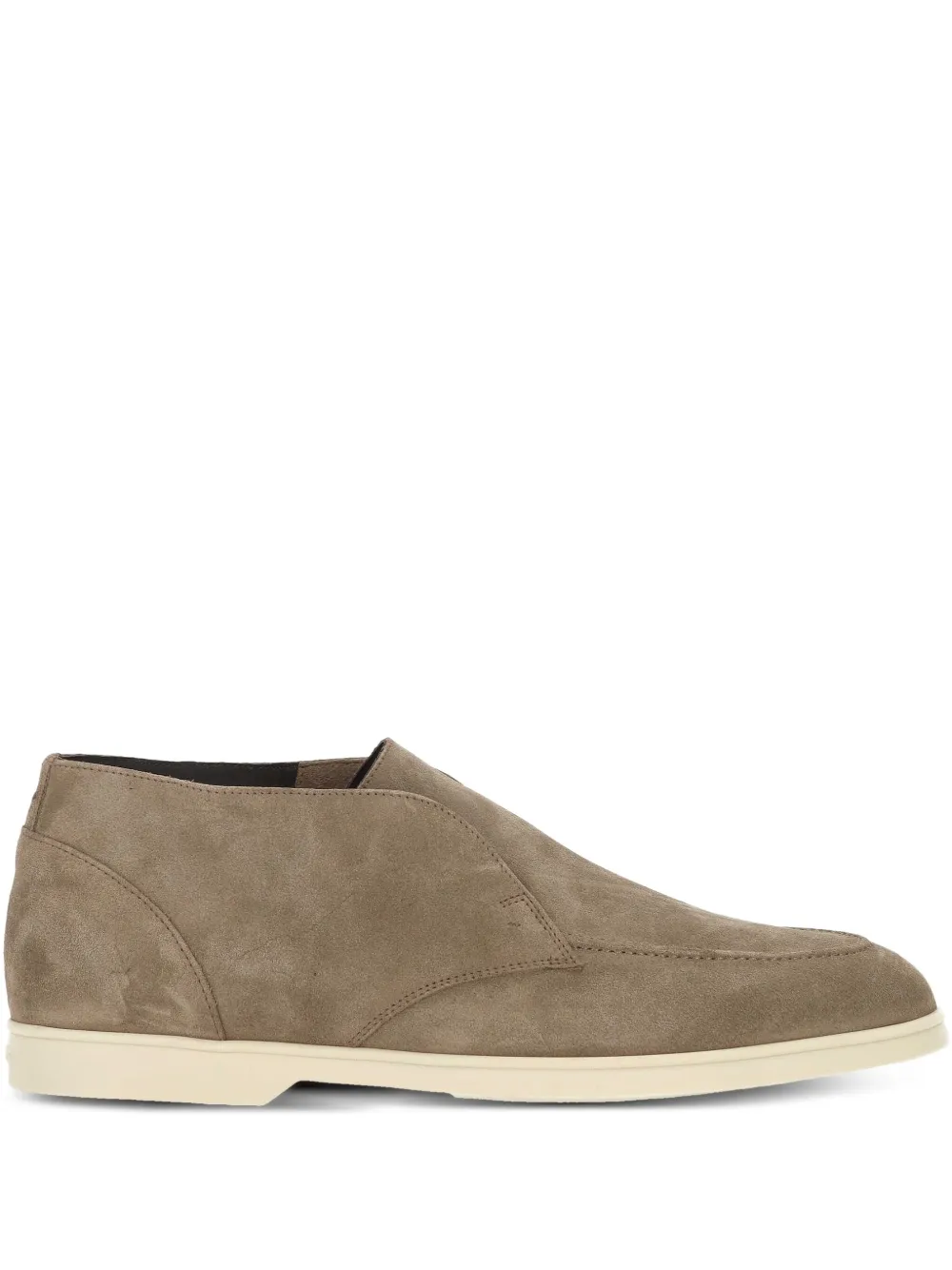 Ghete Doucal’s Suede Slip-On Desert bej, din piele intoarsa, tip slip-on, cu profil inalt, fara inchidere, cusaturi in relief, captuseala din piele, logo interior, bot rotunjit si talpa din cauciuc. 100% piele intoarsa de vitel; 100% piele; 100% cauciuc.