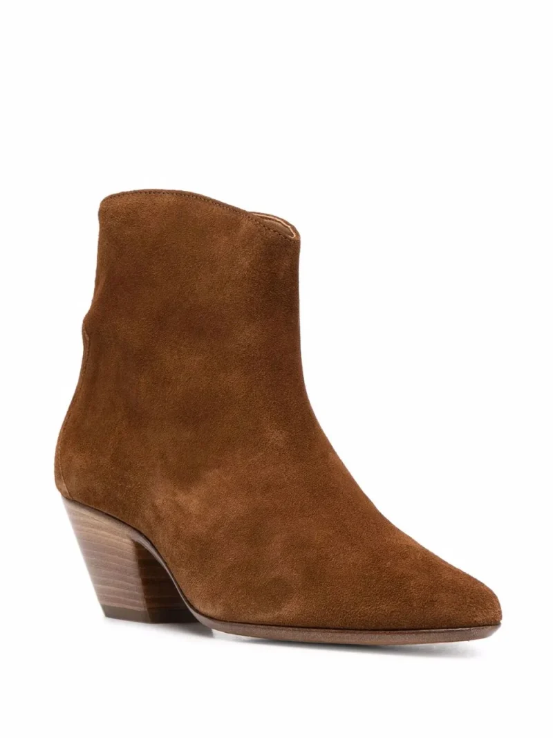 Ghete Isabel Marant Dacken Ankle maro, din piele intoarsa, western-style, cu inchidere fermoar pe laterale, bot ascutit si toc in stil cuban. 100% piele intoarsa; 100% piele de vitel; 100% piele.