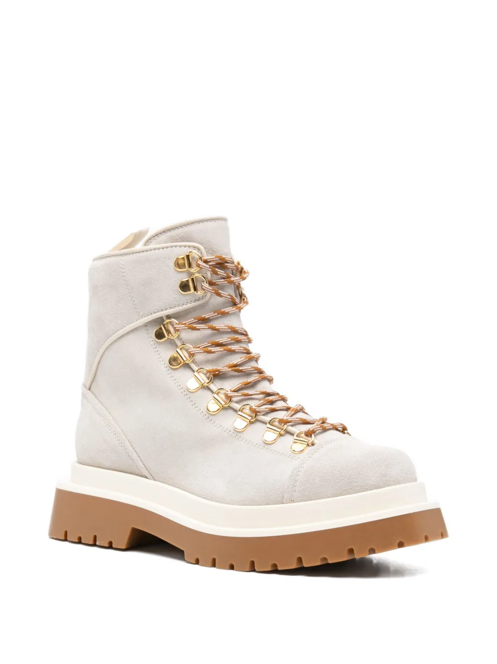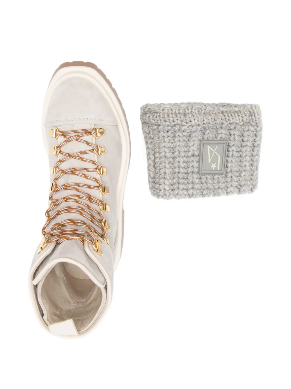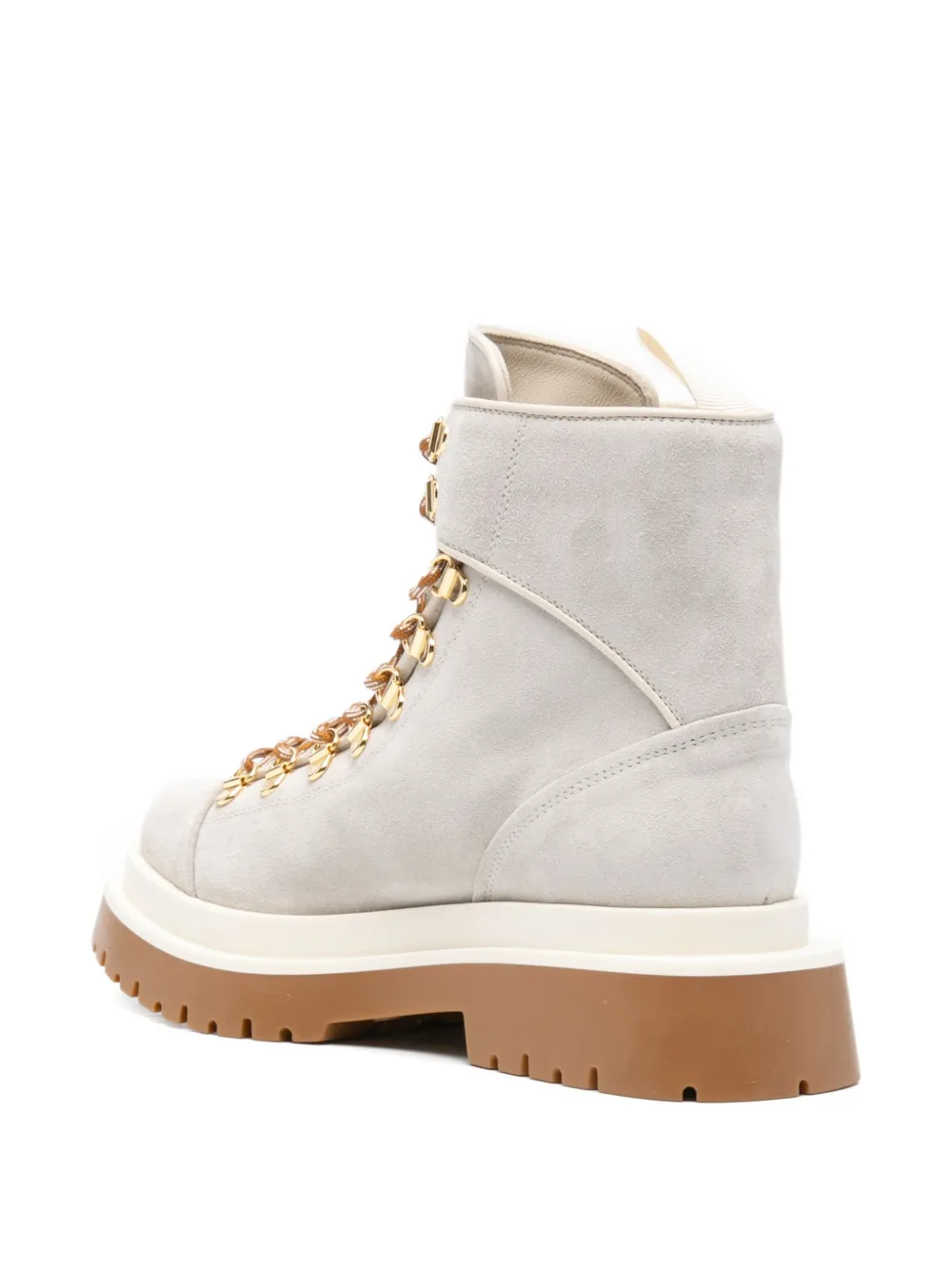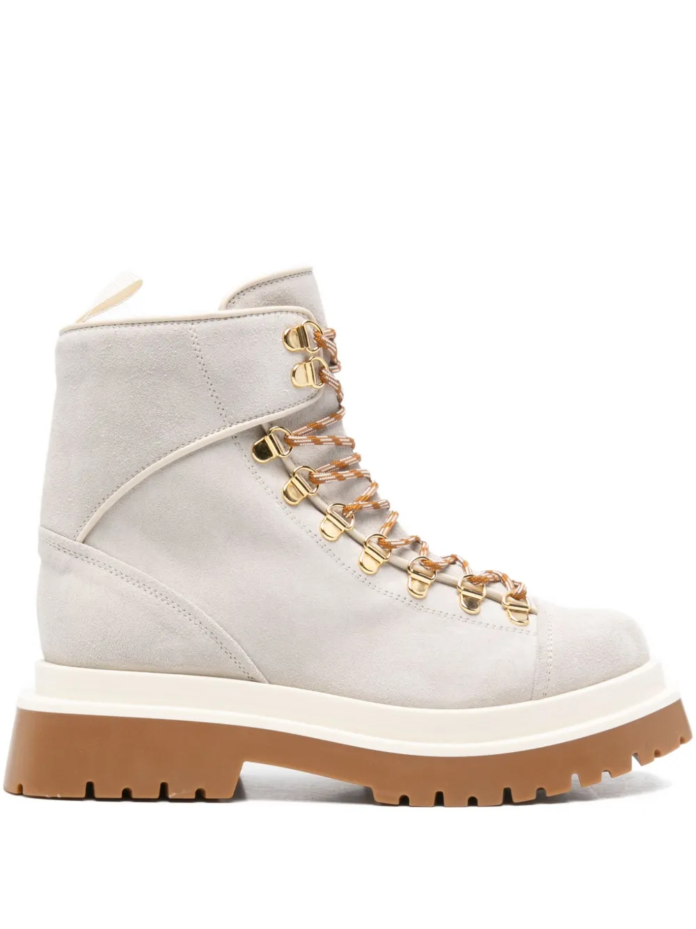 Ghete Lorena Antoniazzi Lace-Up Fastening gri, din piele intoarsa, cu profil inalt, inchidere cu sireturi, captuseala din piele, bot rotund talpa suprainaltata din cauciuc. 100% piele intoarsa; 100% lana; 100% piele; 100% cauciuc.