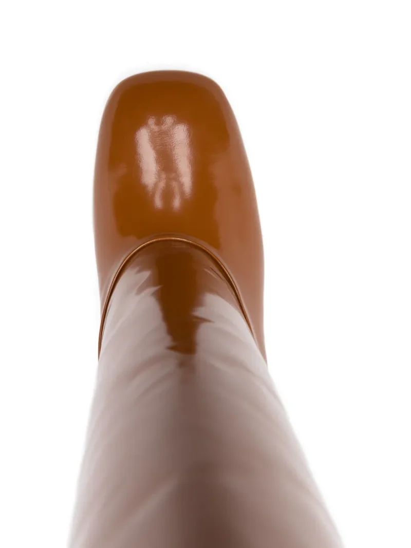 Ghete Marni Knee-High Patent maro, realizate din piele, cu aspect lucios, profil inalt, decoratiune Marni aplicata pe laterale, varf rotunjit si tock block. 100% piele de vitel; 100% piele de vitel; 100% piele de capra.