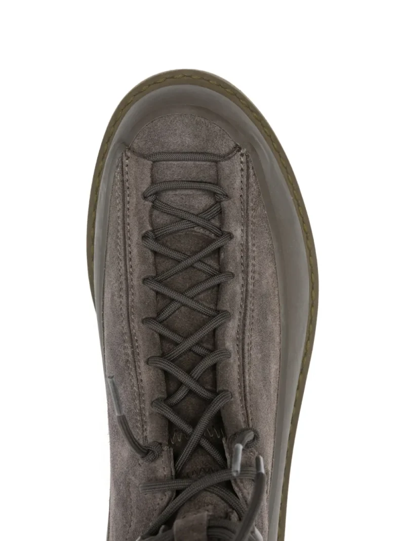 Ghete Stone Island 40mm Lace-Up Suede khaki, din piele intoarsa, cu profil inalt, inchiderecu sireturi, captuseala din piele, captuseala din piele, bot rotund cu insertie de cauciuc si talpa drepata din cauciuc. 100% cauciuc; 100% piele intoarsa; 100% piele; 100% poliuretan.