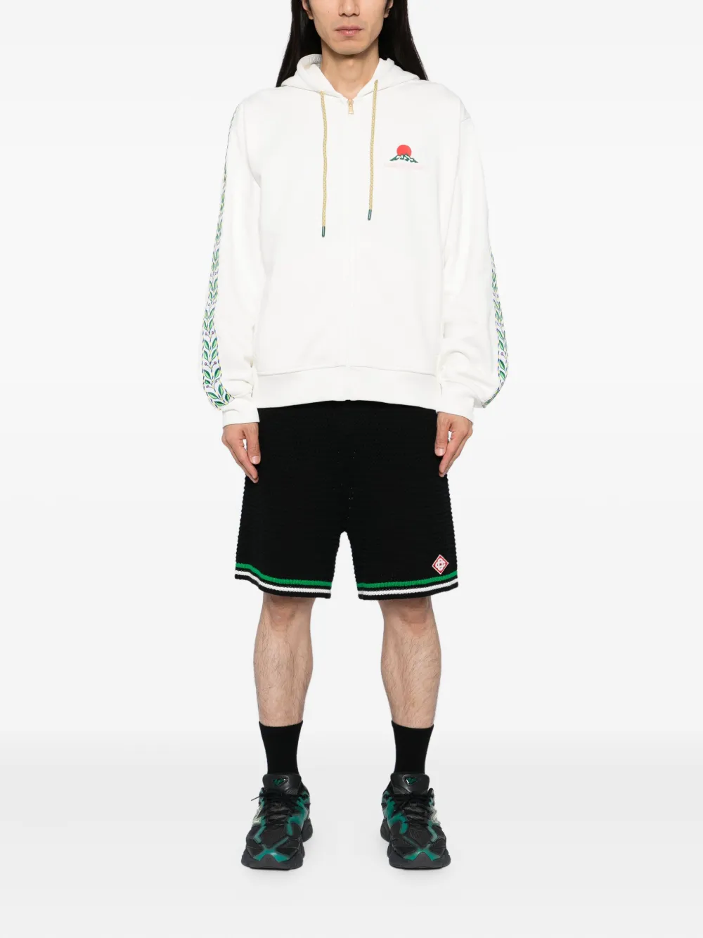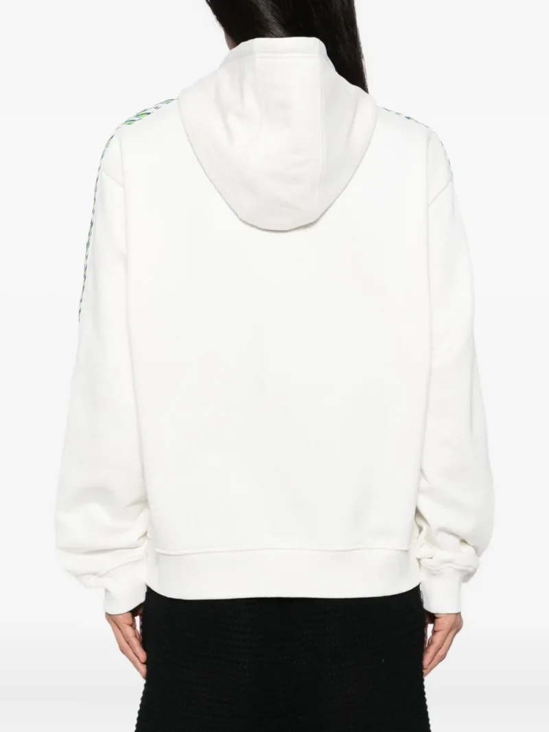 Hanorac Casablanca Montagne alb, inchidere cu fermoar frontal, gluga lejera cu snur, mansete si tiv elastic. 100% bumbac