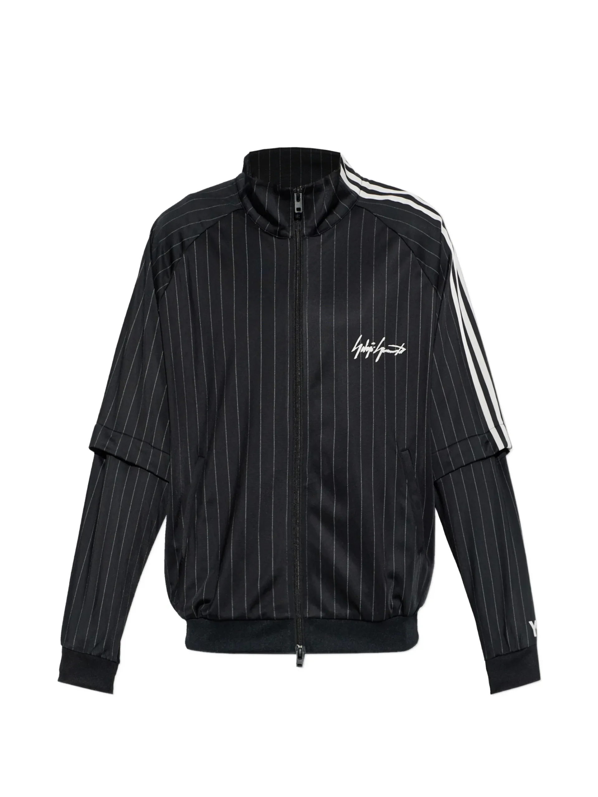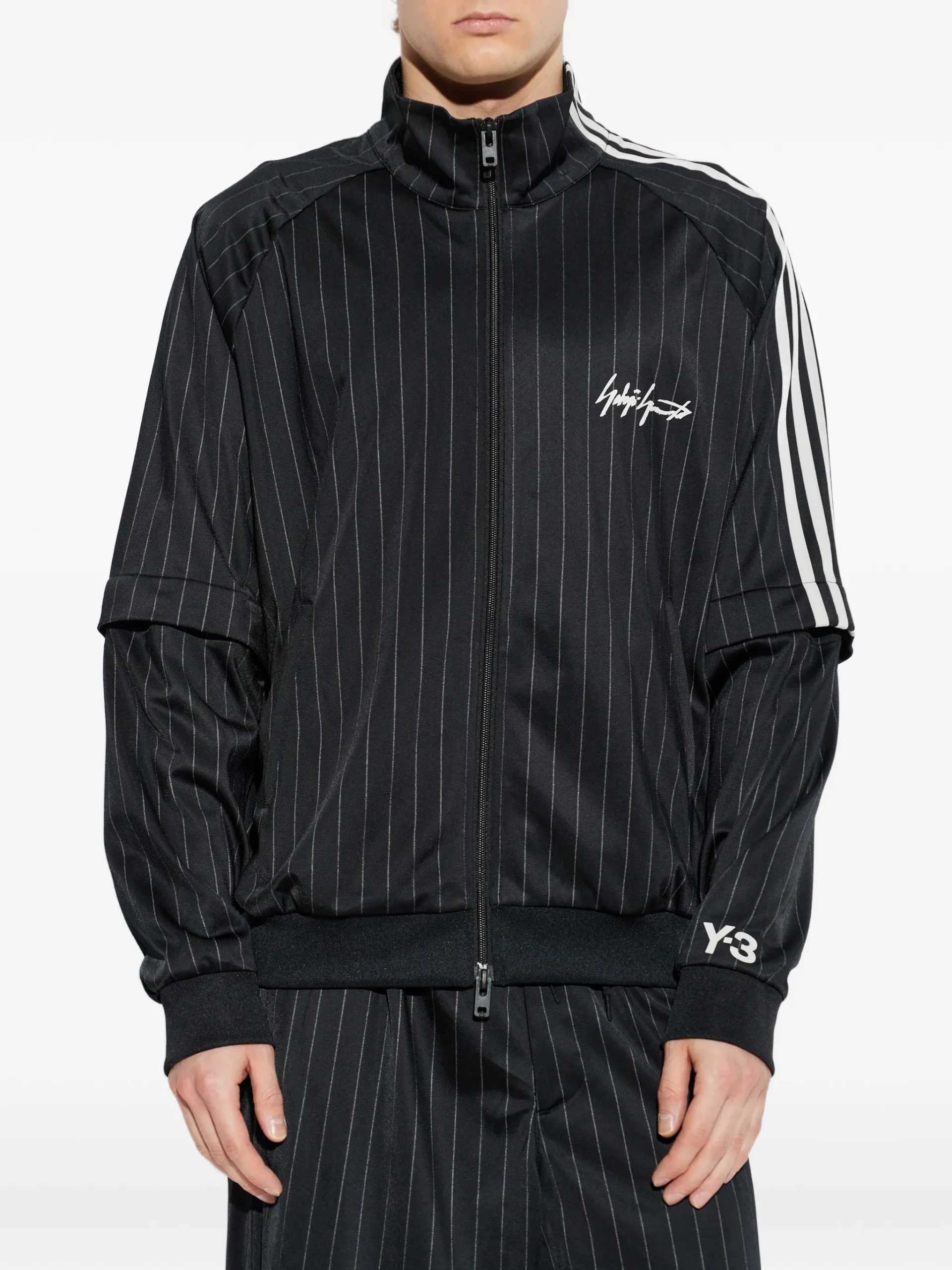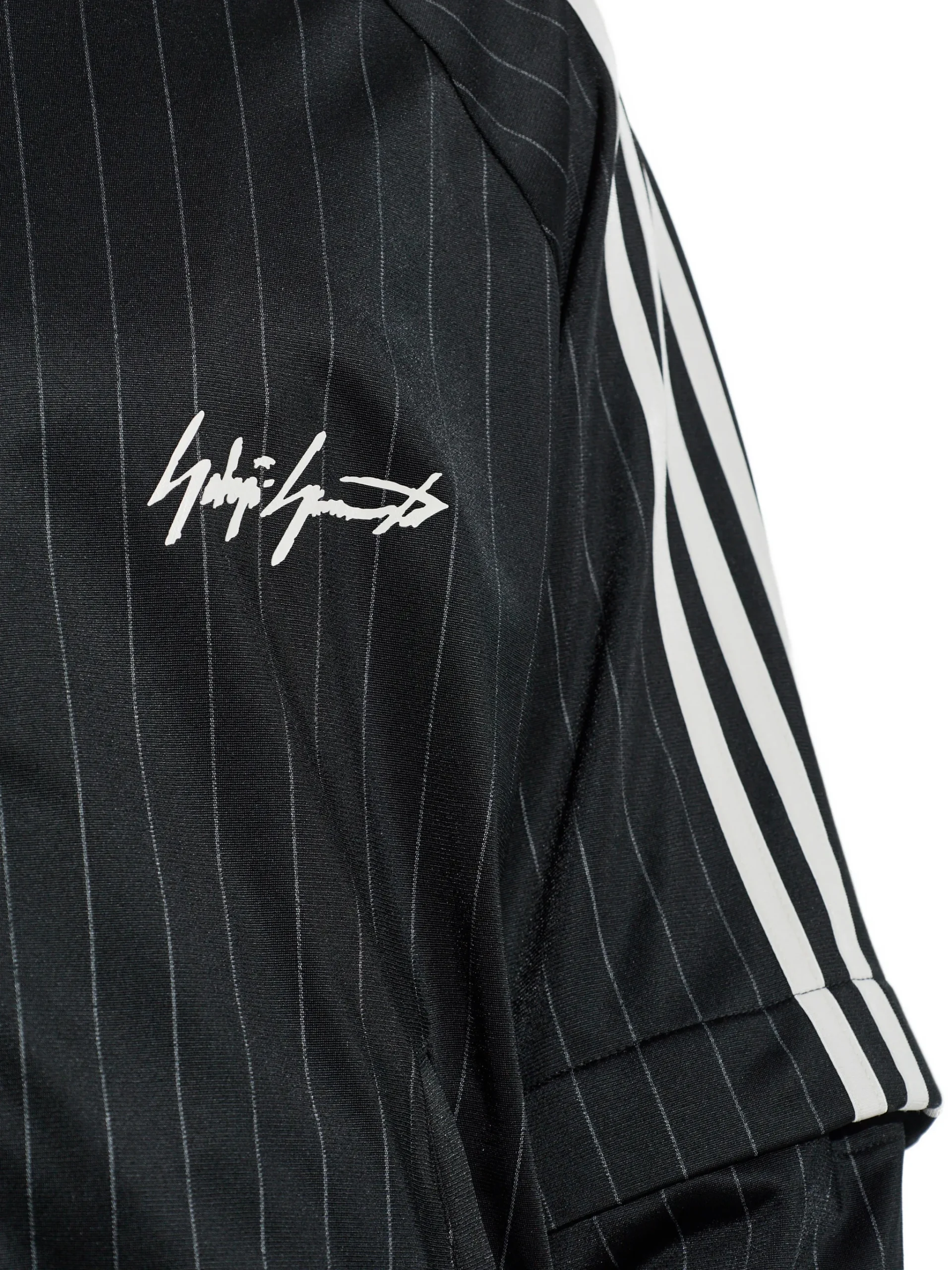 Jacheta Y-3 Pinstripe Track neagra, cu model in dungi fine, guler inalt, inchidere frontala cu fermoar si tiv elastic.100% poliester