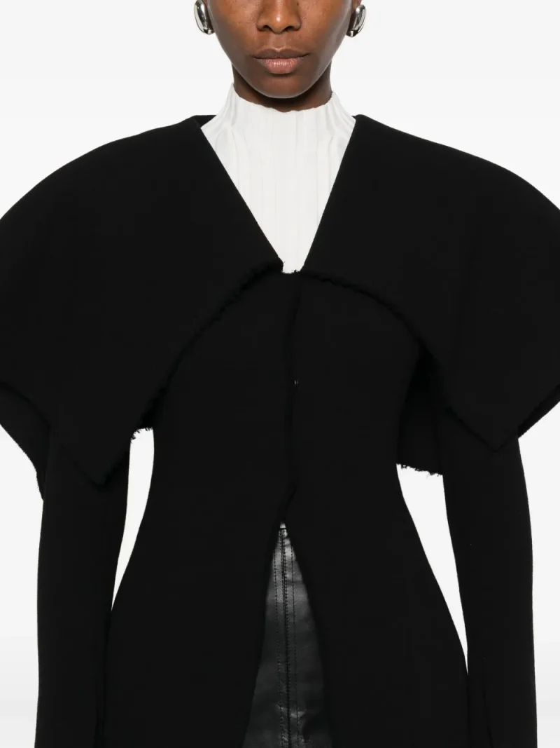 Jacheta A.W.A.K.E. Mode wide-collar long-sleeve negru, guler lat, aspect oversized, maneci lungi.17% nylon 83% lana