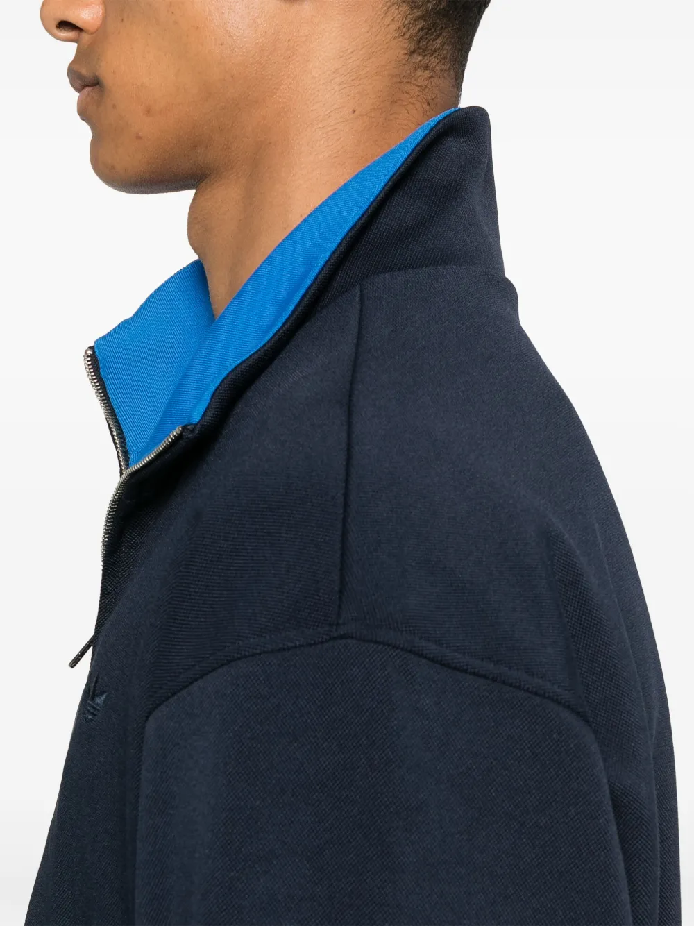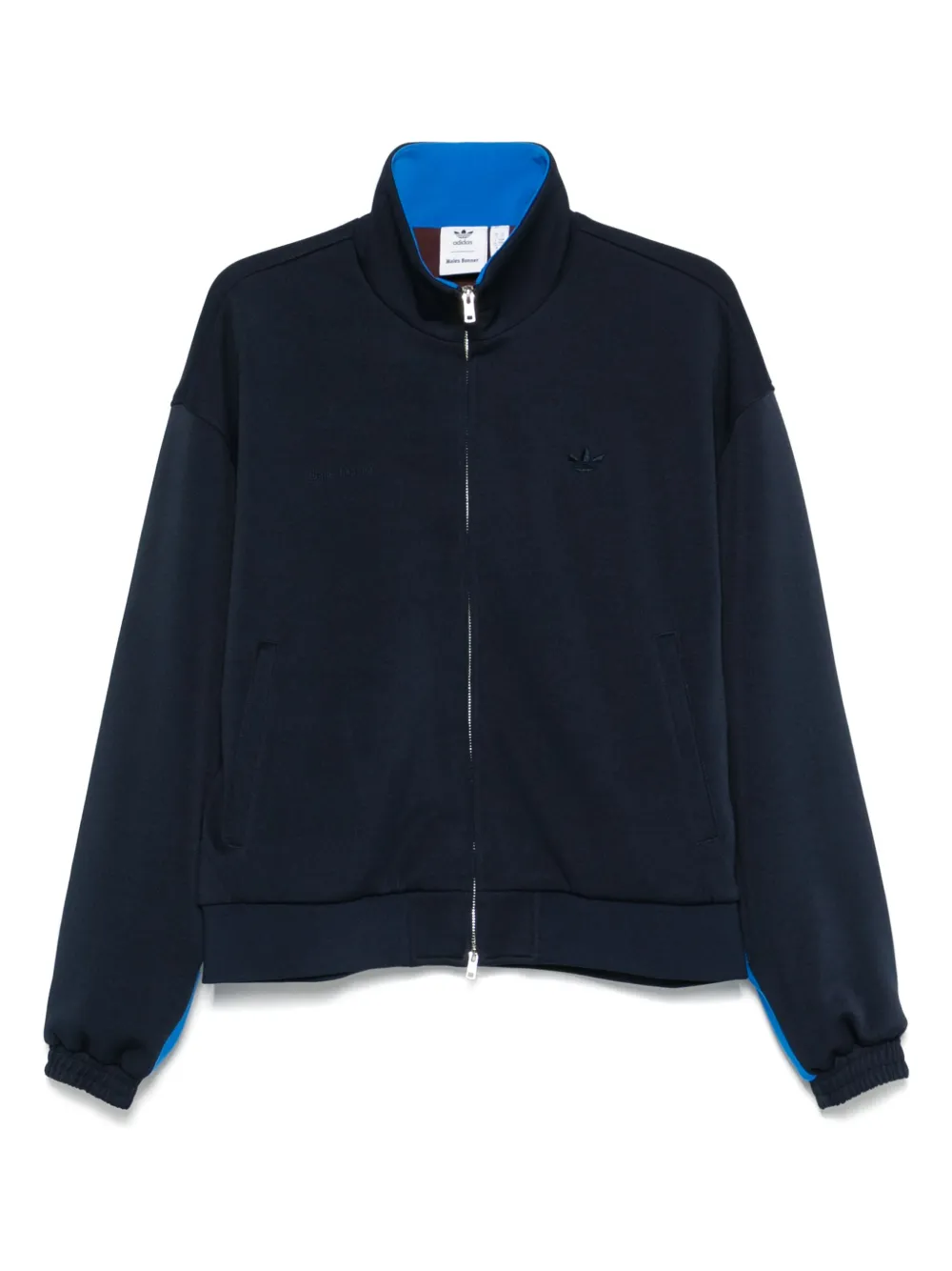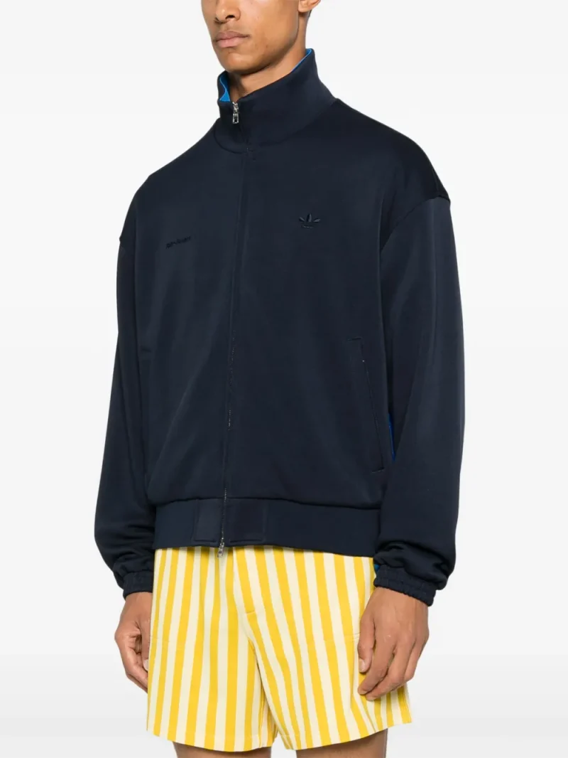 Jacheta Adidas x Wales Bonner Trefoil-Logo bleumarin, cu guler inalt, inchidere cu fermoar frontal bidirectional, maneci lungi, mansete elastice, buzunare laterale, detaii cobtrastante si logo brodat. Potrivit pentru sezonul toamna/iarna. 96% poliester; 4% elastan.