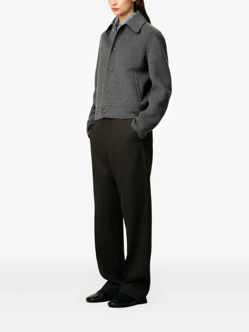 Jacheta Ami Buttoned Wool Boxy gri, construita din lana, cu guler clasic, inchidere cu nasturi, maneci lungi, mansete cu nasturi, buzunare laterale si tiv drept. Potrivita pentru sezonul toamna/iarna. 100% lana.