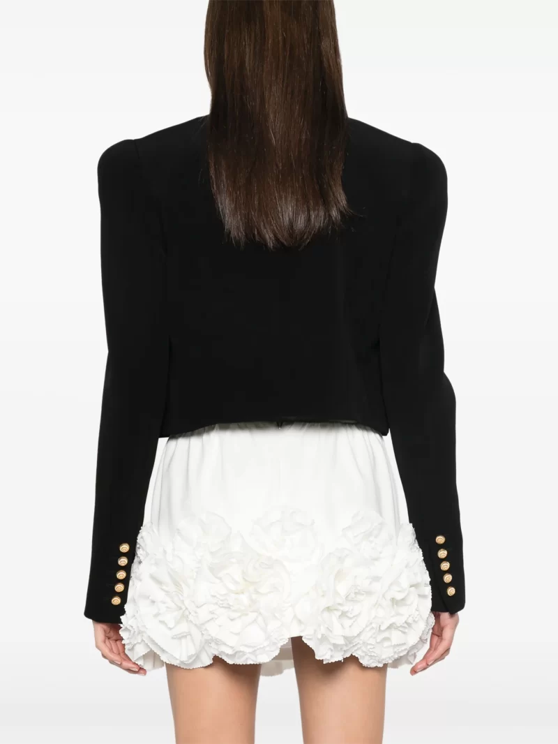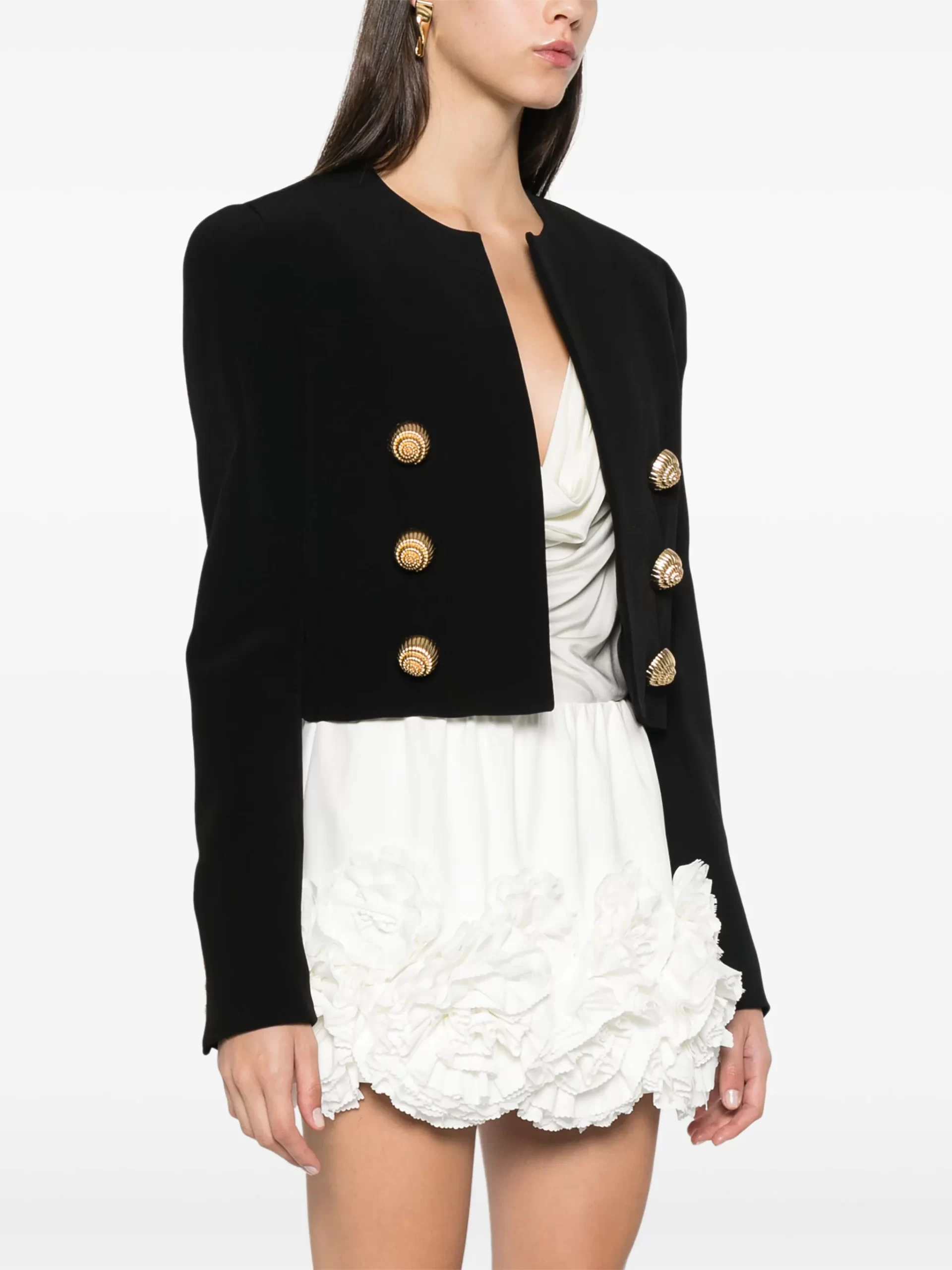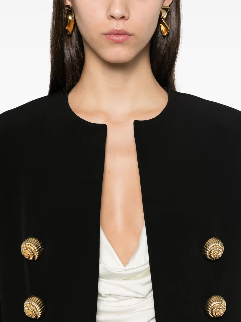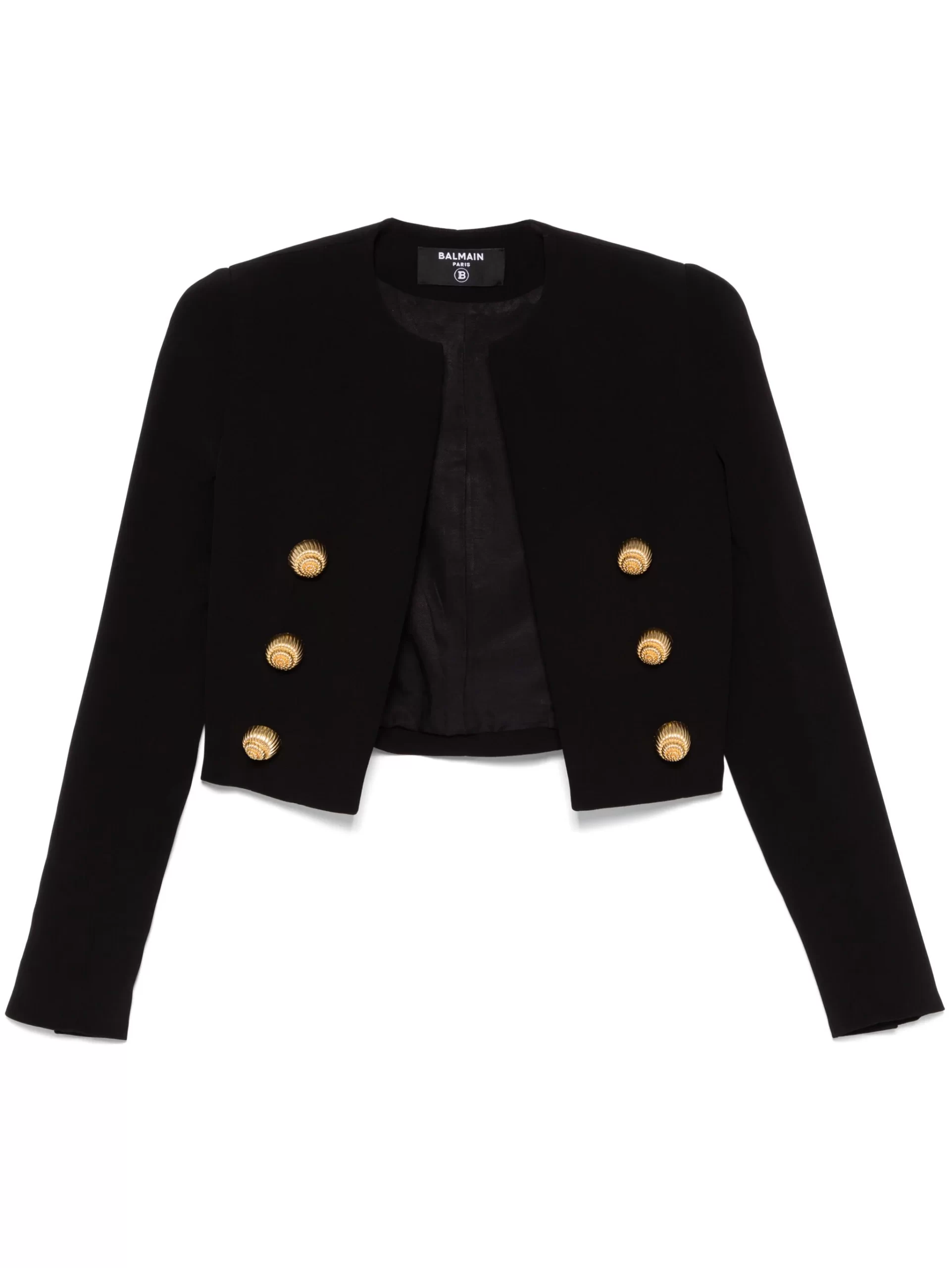 Jacheta Balmain Crepe neagra cu inchidere cu nasturi, mansete cu nasturi. textura creponata si tiv drept.100% vascoza