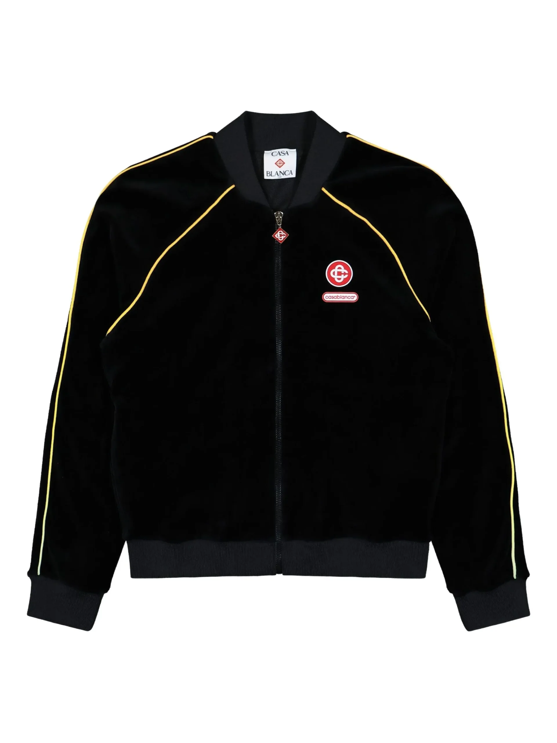 Jacheta Casablanca logo-embroidered negru, inchidere cu fermoar, maneci elastice, logo brodat pe partea din fata si tiv elastic. 54% lioncel 26% bumbac 18% poliester, 2% elastan