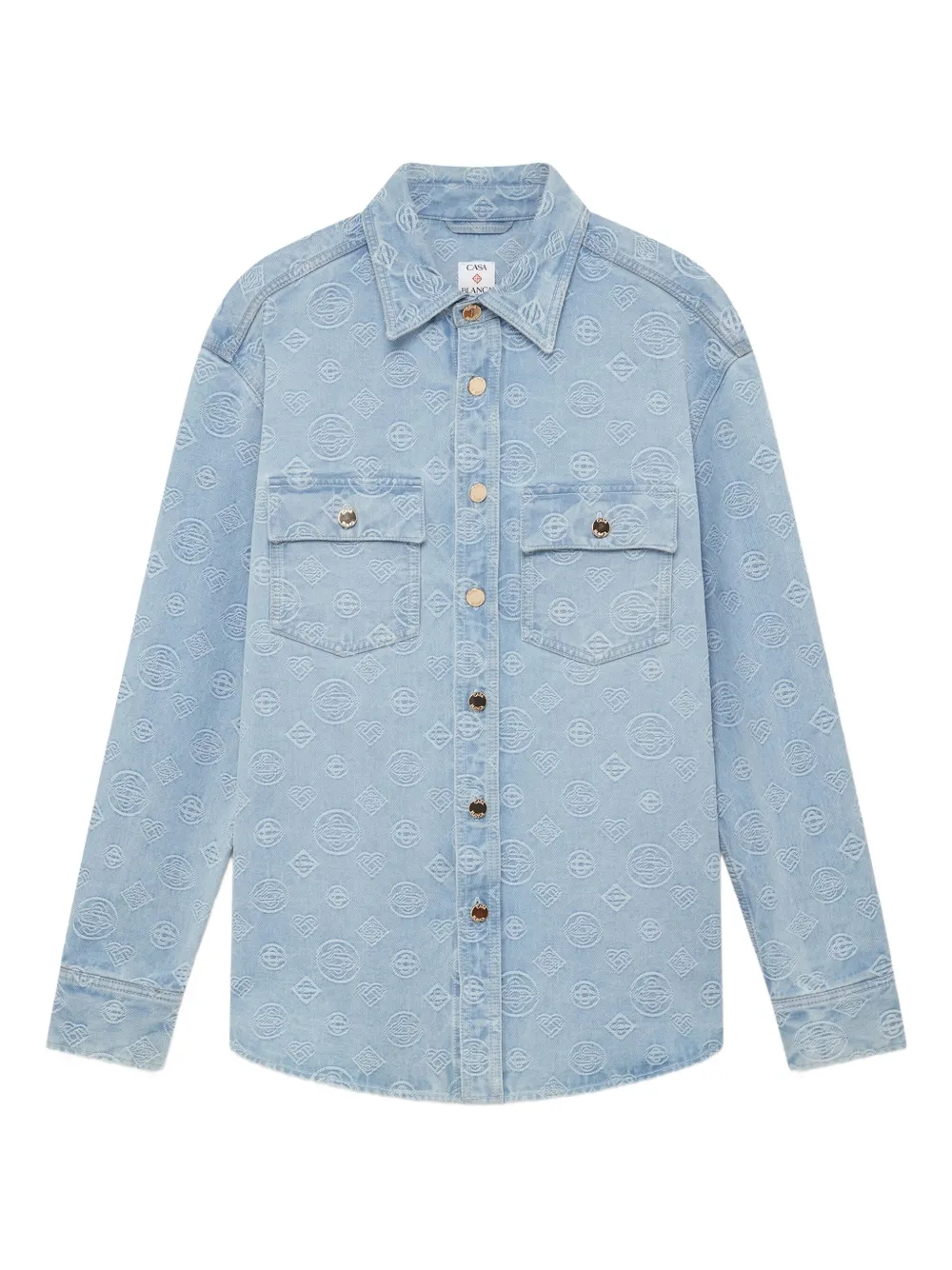Jacheta Casablanca Monogram-Embroidered albastru, realizata din bumbac denim, cu guler clasic, inchidere cu nasturi aurii, maneci lungi, mansete cu nasturi, logo monogram brodat pe toata suprafata si tiv drept. Potrivita pentru sezonul toamna/iarna. 100% bumbac denim.