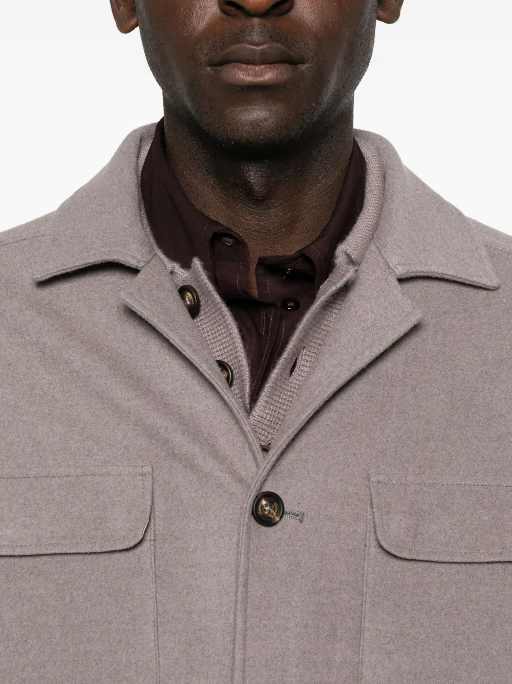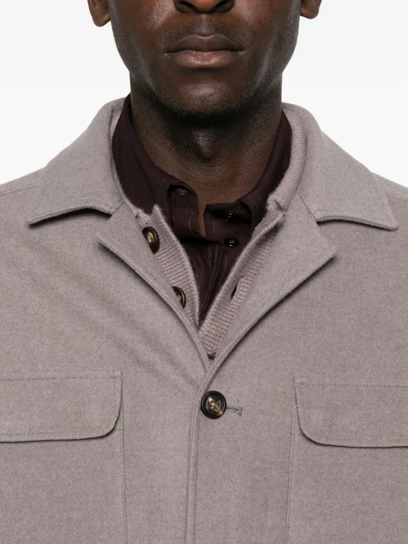 Jacheta Eleventy Button-Fastening Patch-Pocket maro, realizata din lana, cu rever crestat, inchidere cu nasturi, maneci lungi, mansete cu nasturi, buzunare aplicate la piept, buzunare laterale si tiv drept. Potrivita pentru sezonul toamna/iarna. 100% lana.