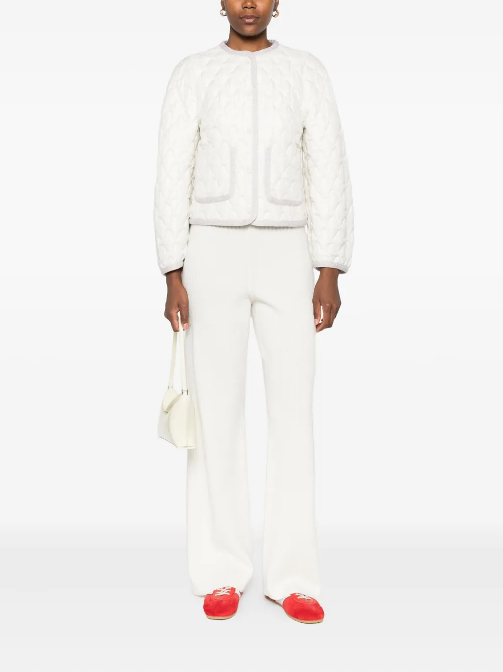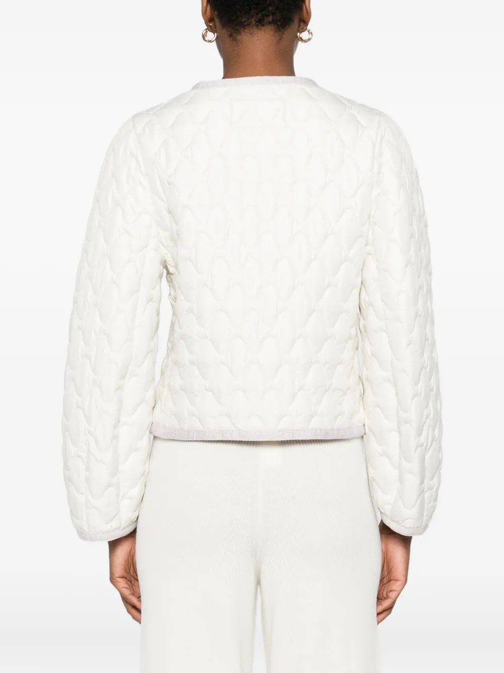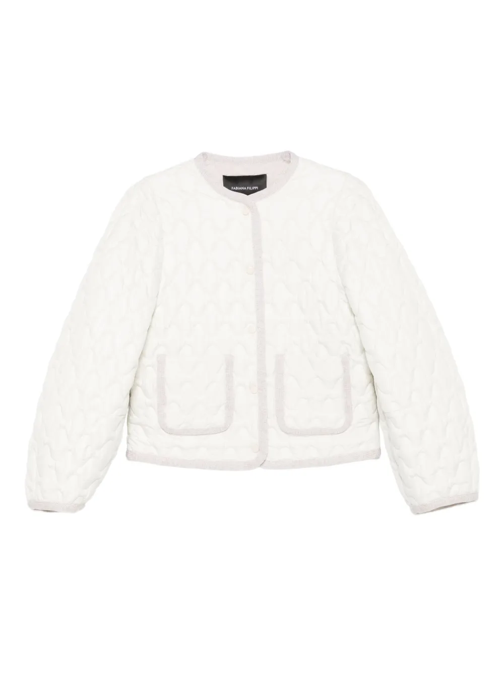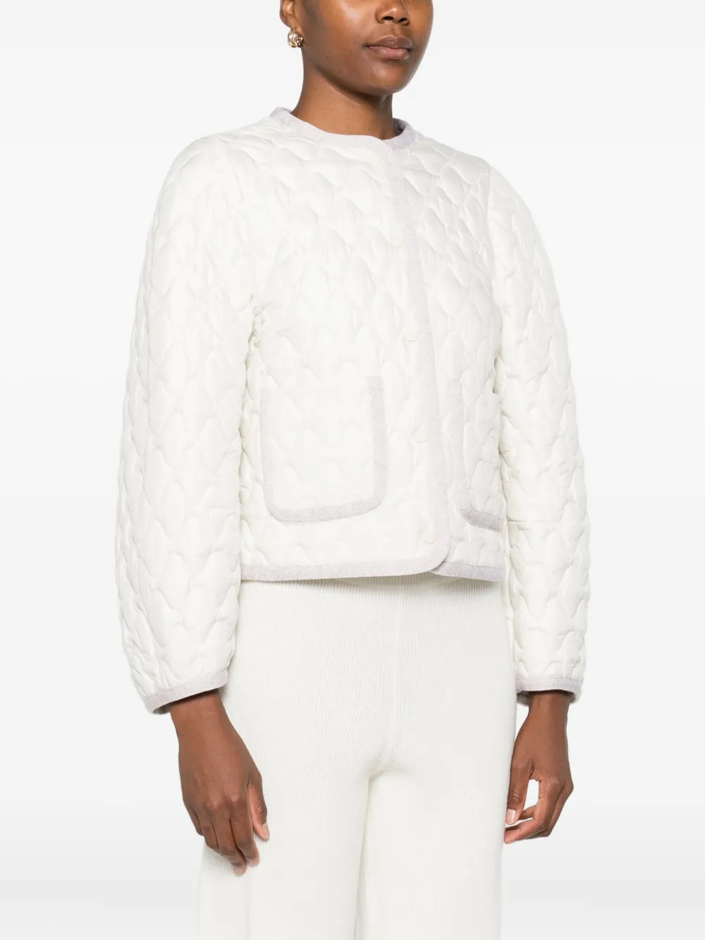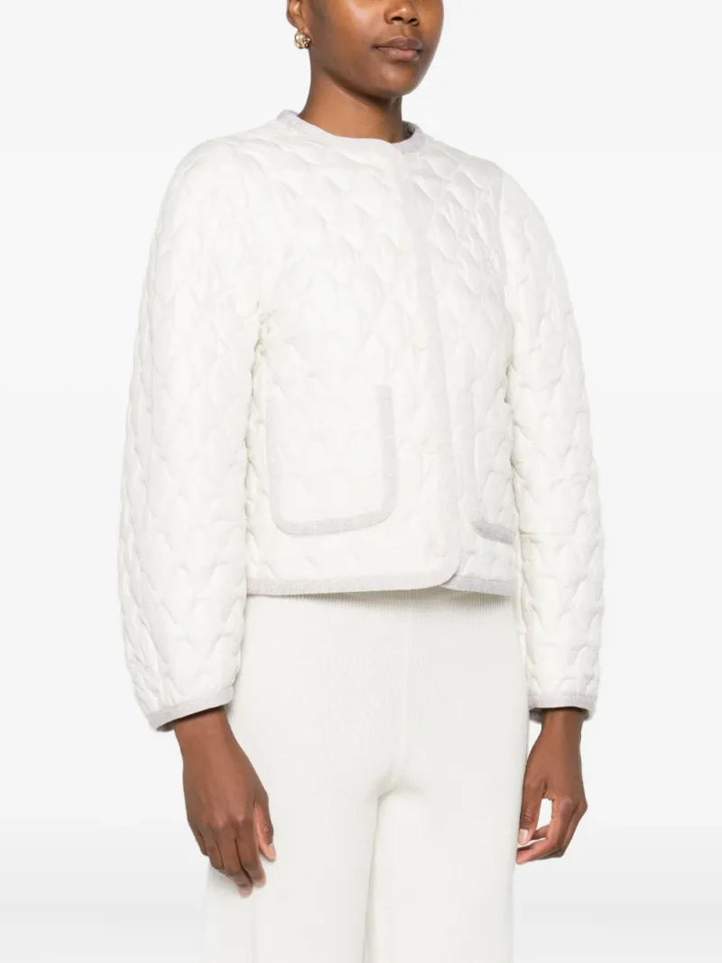 Jacheta Fabiana Filippi Quilted Pocket alb, matlasata integral, cu inchidere capse, maneci lungi, buzunare laterale aplicate si finisaje in contrast. Potrivita pentru sezonul toamna/iarna. 100% poliester.