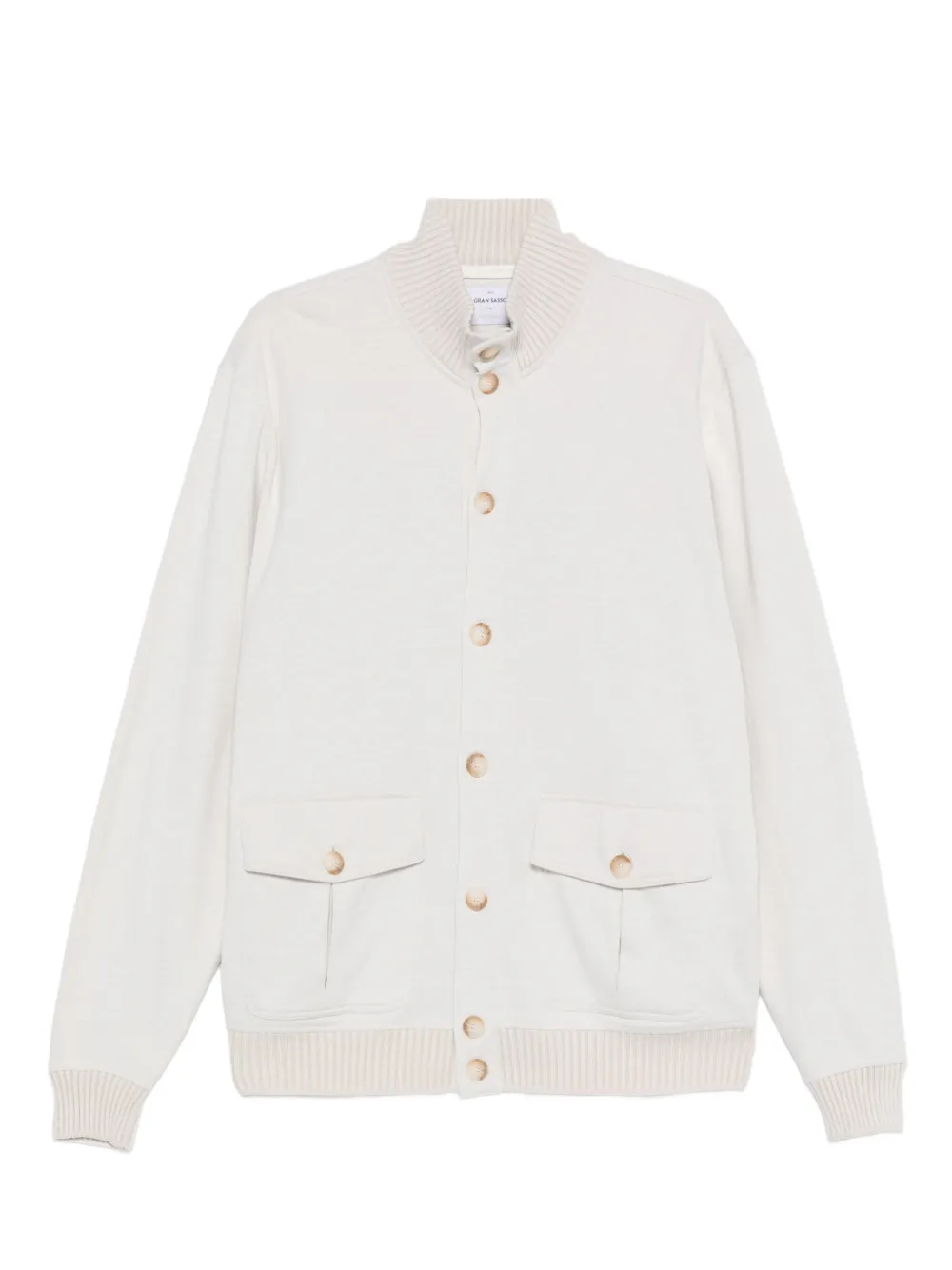 Jacheta Gran Sasso patch-pocket gri, inchidere capse, maneci lungi, tiv elastic. Potrivita pentru sezonul primavara/vara. 98% bumbac 2% elastan