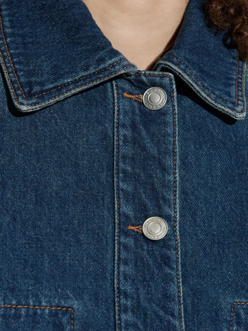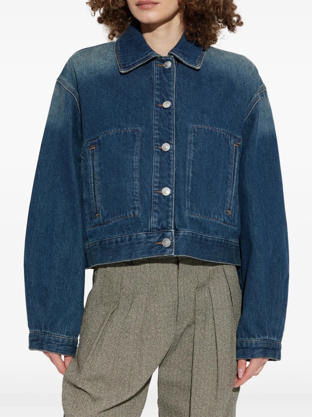 Jacheta Isabel Marant Josephine, cu design structural din denim, guler clasic, inchidere cu nasturi metalici, umeri cazuti, maneci lungi, buzunare laterale tip welt si tiv drept. Potrivita pentru sezonul toamna/iarna.100% bumbac.