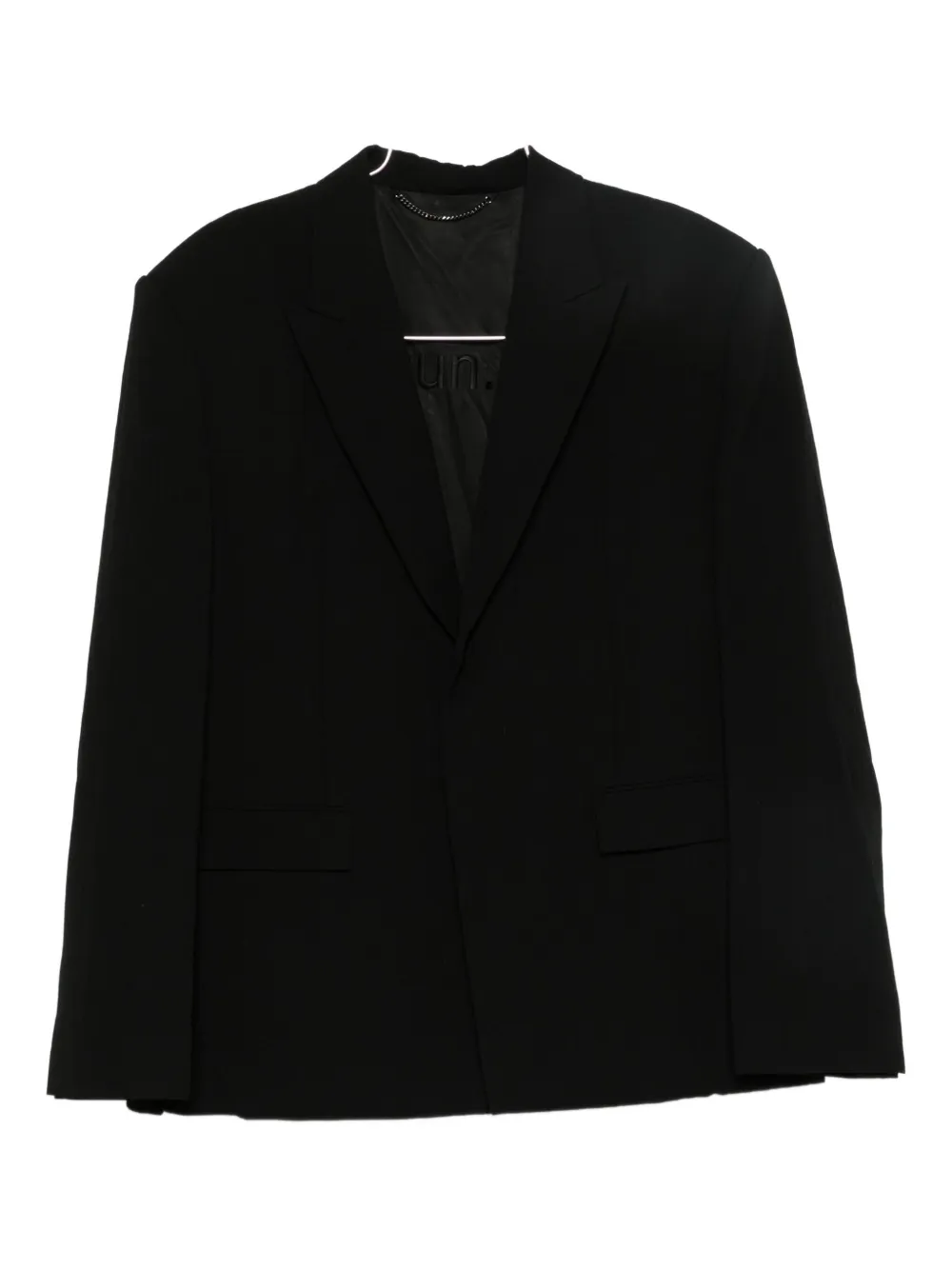 Jacheta Juun.J Notched negru, cu rever ascutit, inchidere cu nasture, maneci lungi, buzunare cu clapeta, captuseala cu logo si tiv drept. Potrivit pentru sezonul toamna/iarna. 100% rayon; 91% lana; 9% nailon.