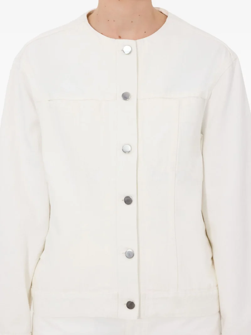 Jacheta LouLou De Saison Rima patch-pocket ecru, cu buzunare aplicate la piept, buzunare laterale, decolteu fara guler si inchidere cu nasturi. 100% bumbac