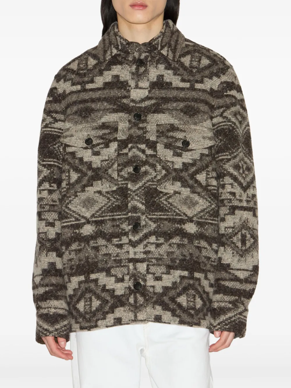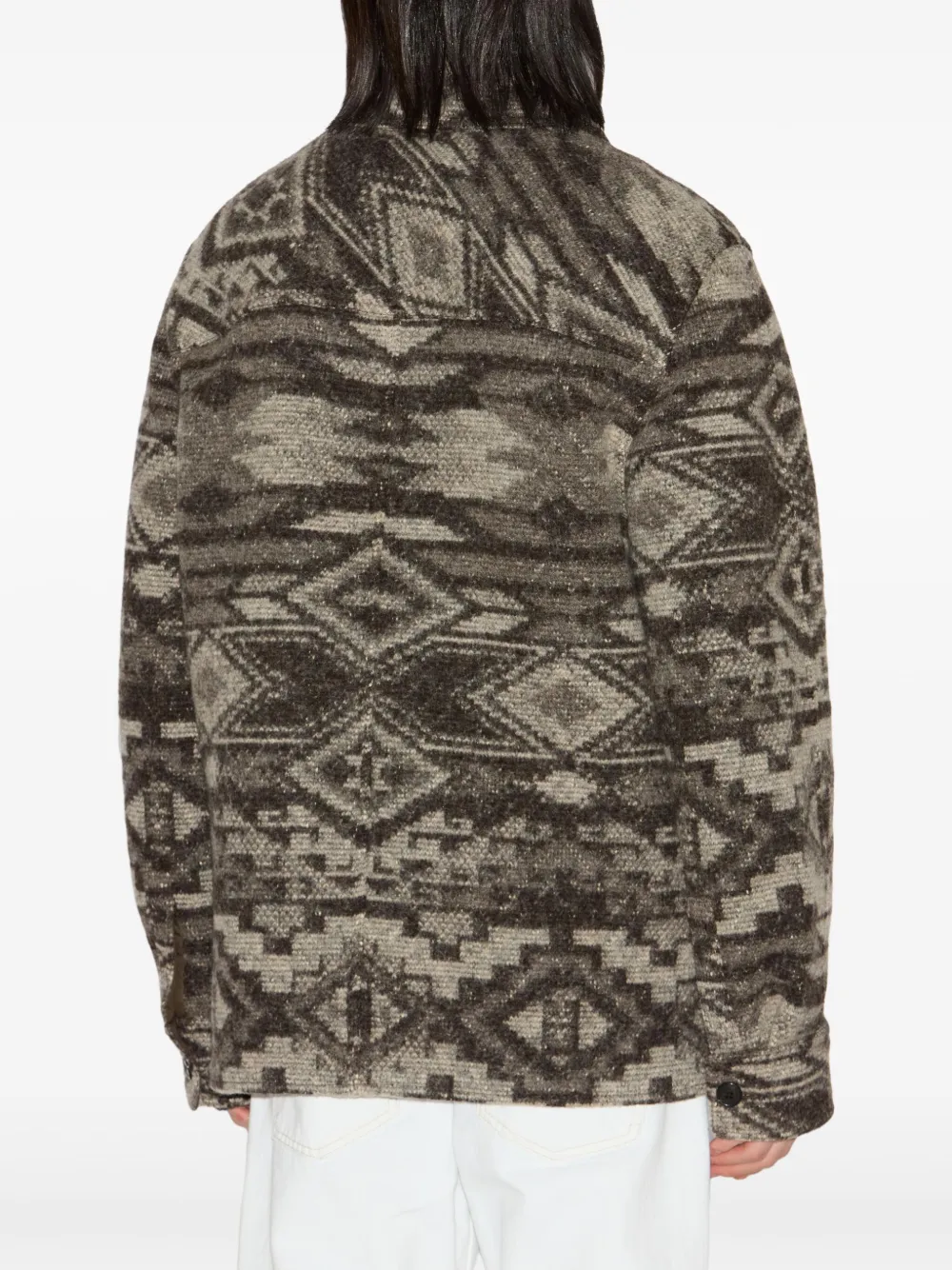 Jacheta Marant Kervon bej, realizata din amestec de lana, cu guler clasic, inchidere cu nasturi, maneci lungi, buzunare aplicate, tesatura cu model grafic, croiala lejera si tiv drept. Potrivita pentru sezonul toamna/iarna. 46% lana; 32% poliester; 22% acrilic.