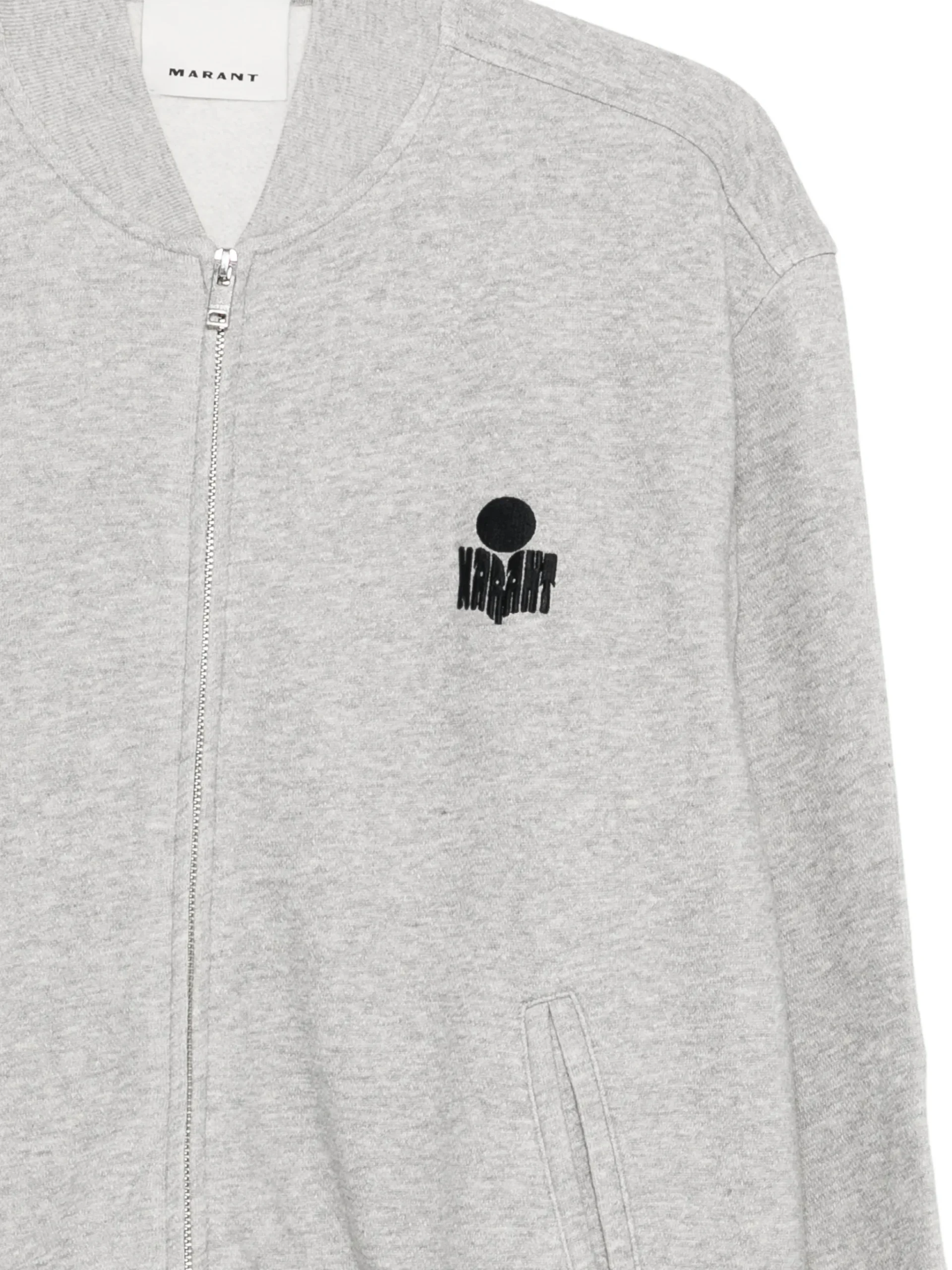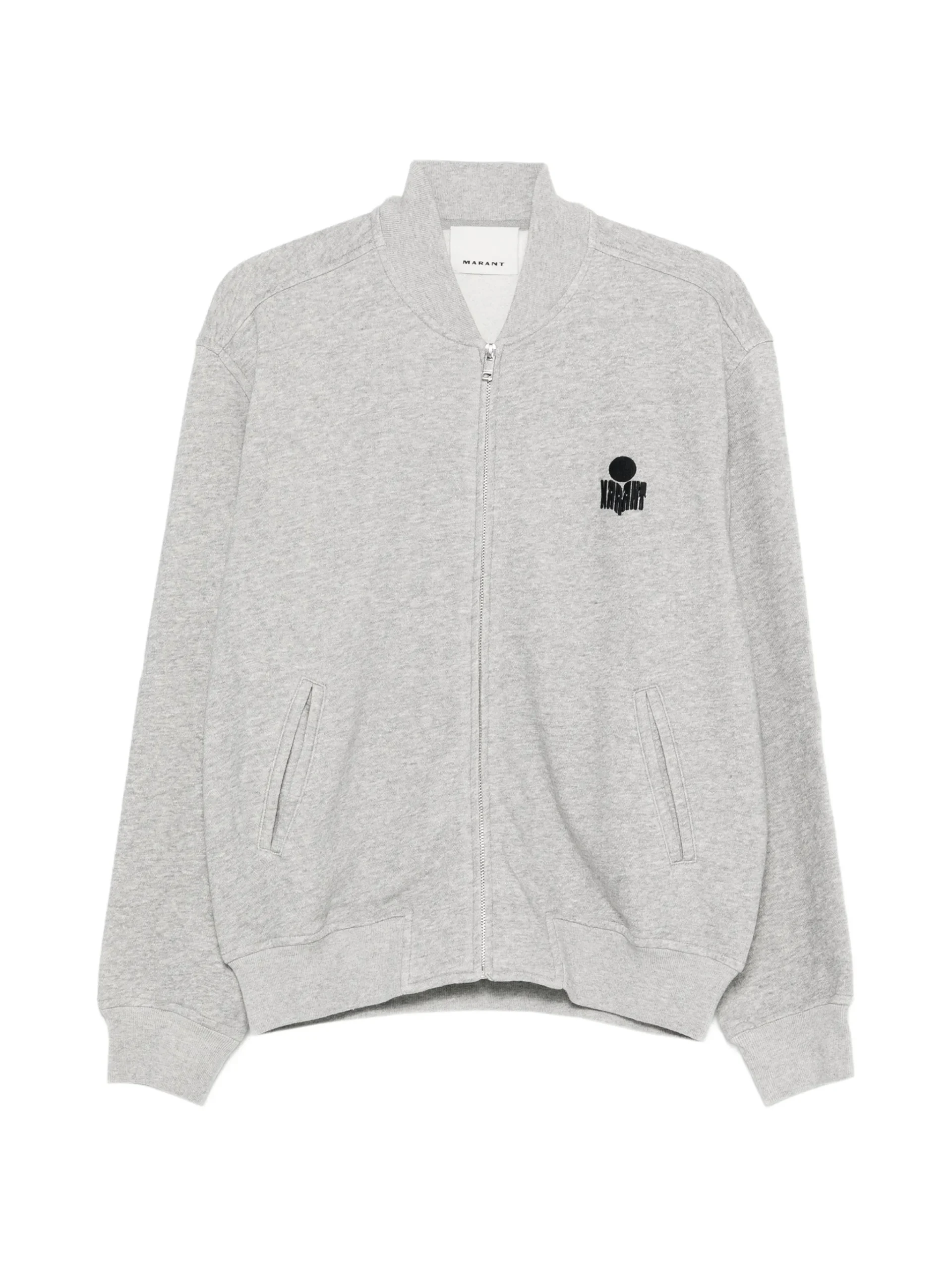 Jacheta MARANT gri, cu detaliu logo, inchidere cu fermoar, buzunare frontale, maneci lungi si guler rotund. 88% bumbac 12% poliester