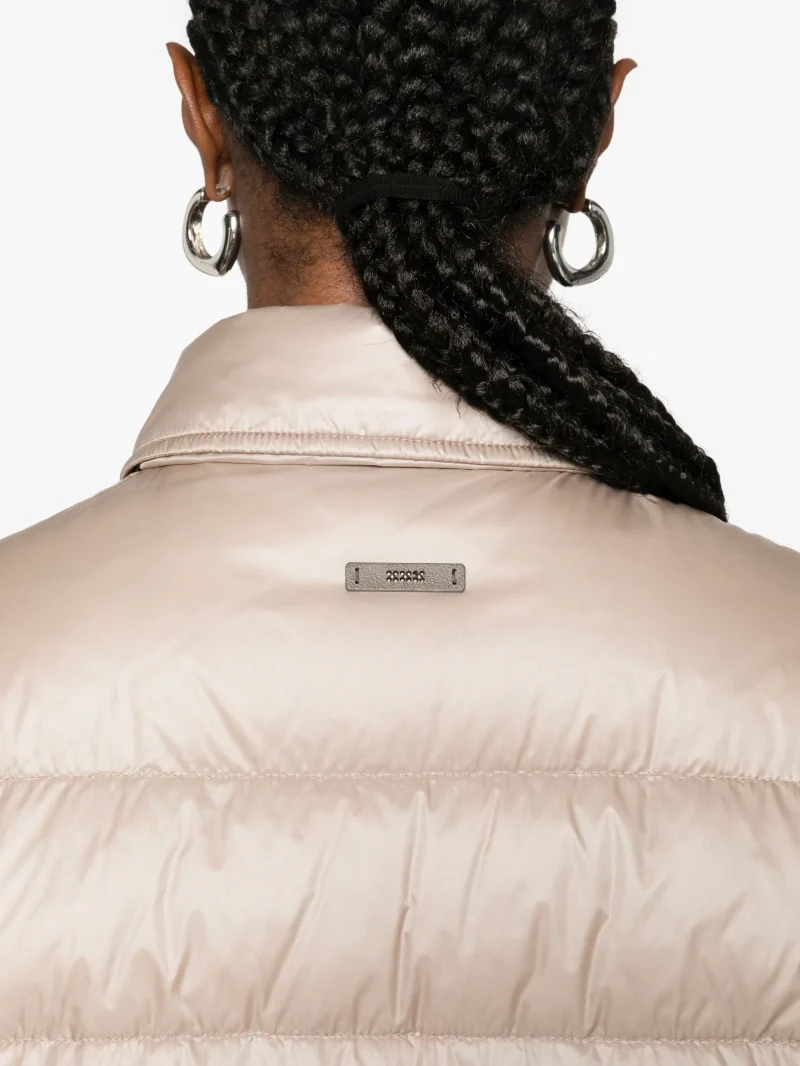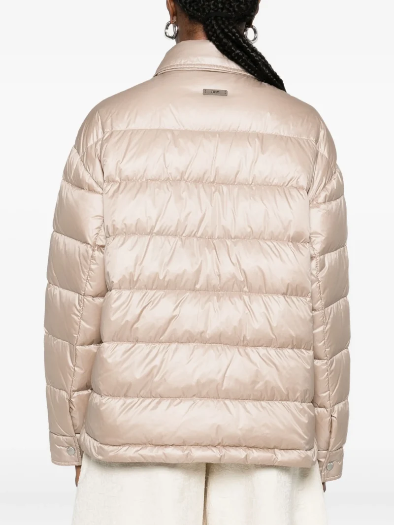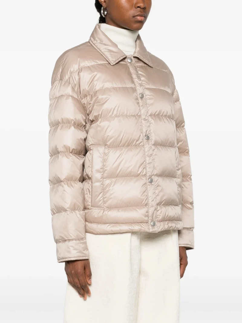 Jacheta Peserico Snap Fastening gri, inchidere cu capse, guler ascutit, forma de matlasare orizontala. 100% poliamida