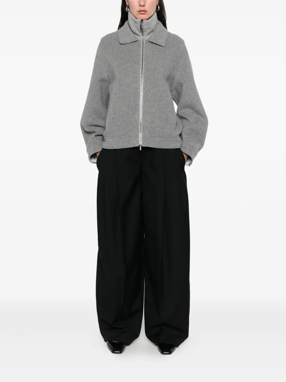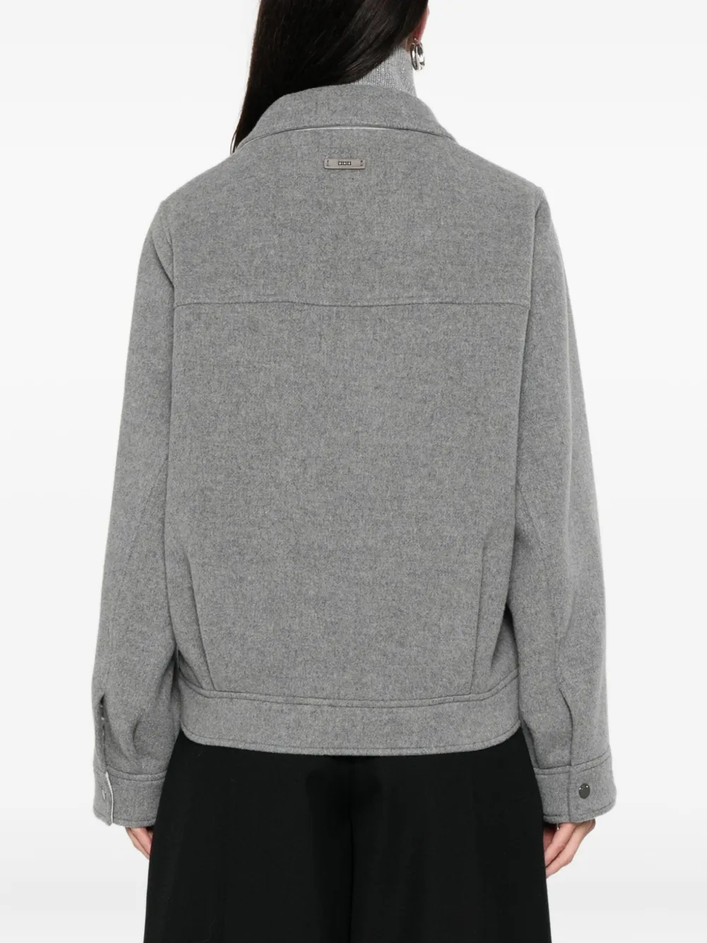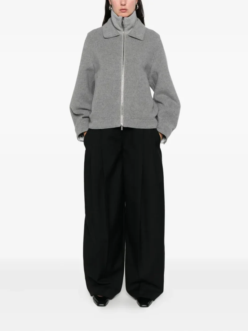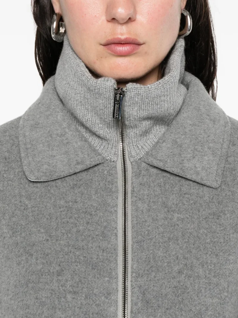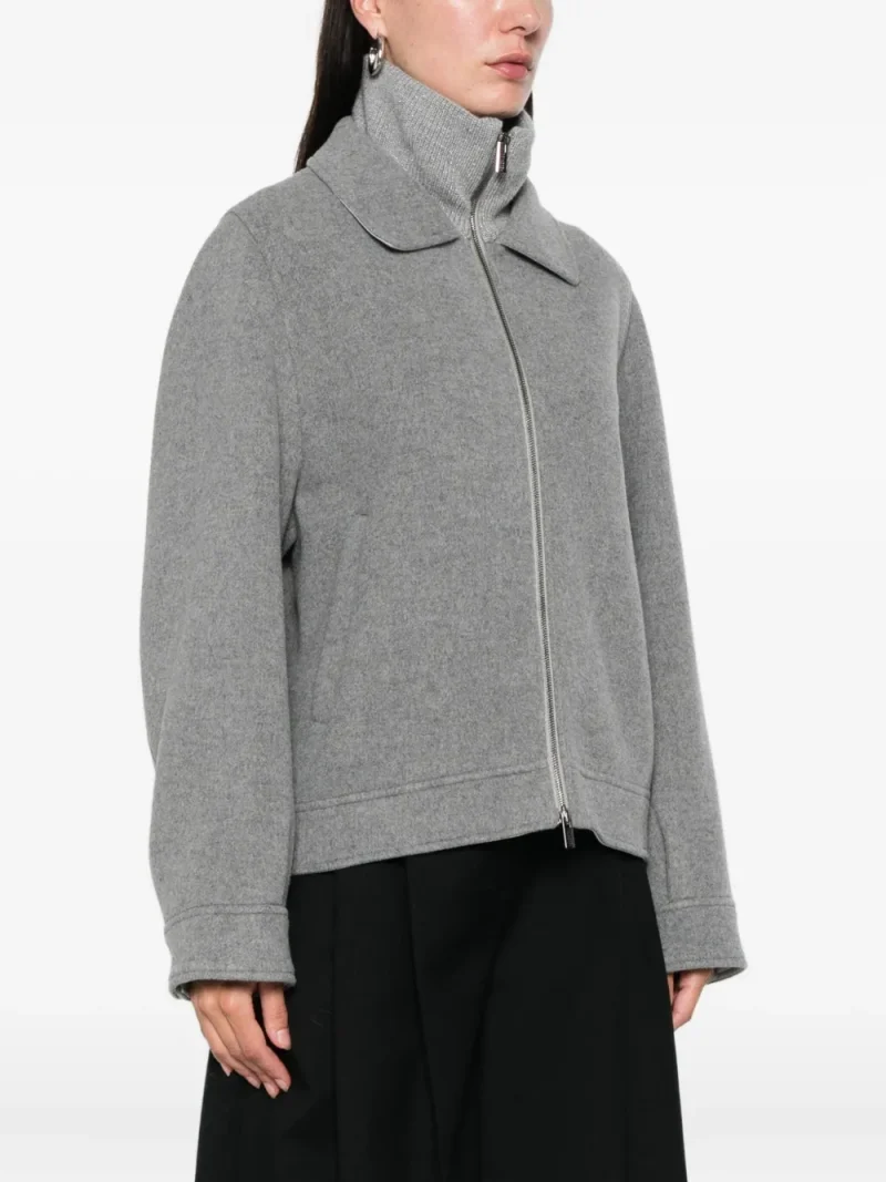 Jacheta Peserico Zip Collared gri, din lana, cu guler dublu, maneci lungi, inchidere cu fermoar bidirectional, maneci lungi, buzunare laterale si tiv drept. Potrivita pentru sezonul toamna/iarna. 70% lana; 20% nylon; 10% casmir.