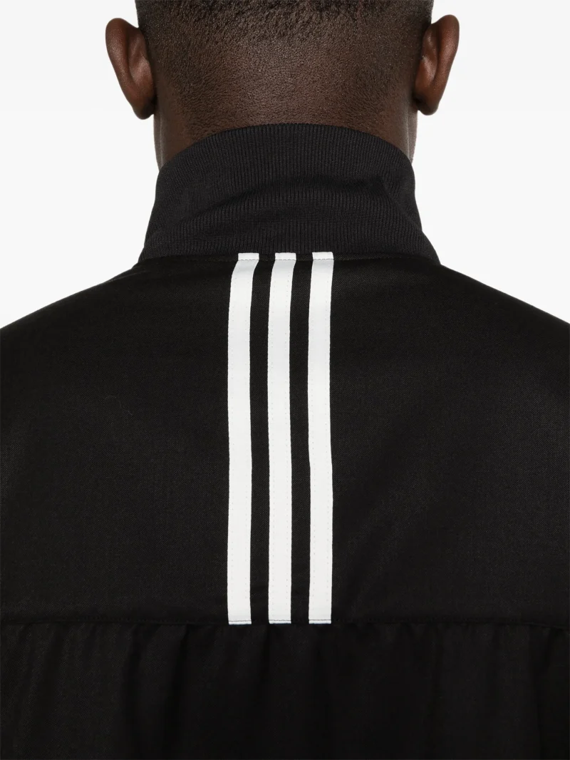 Jacheta Y-3 zip-up neagra, cu maneci lungi, inchidere cu fermoar, guler tip stand-up, buzunare laterale si tiv drept. 65% poliester 30% lana 5% elastan