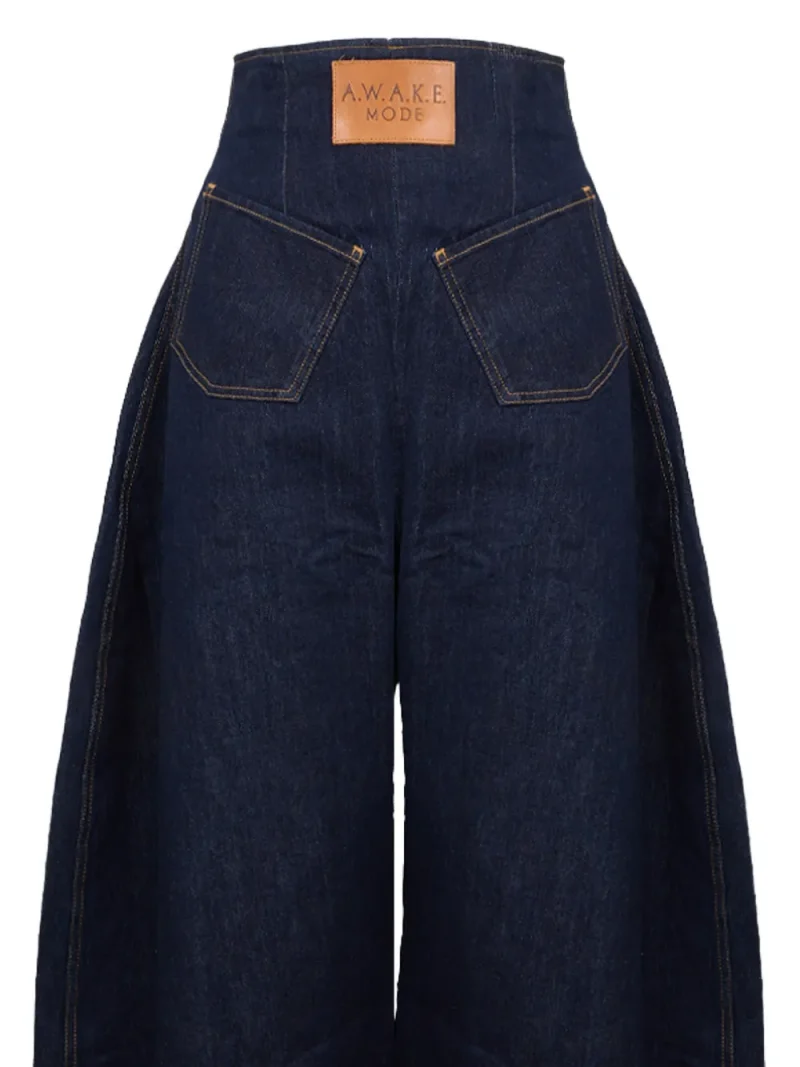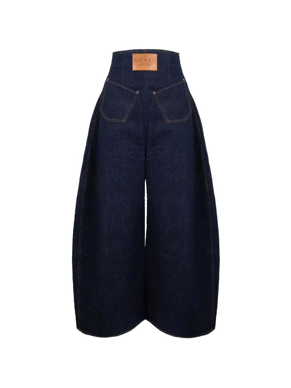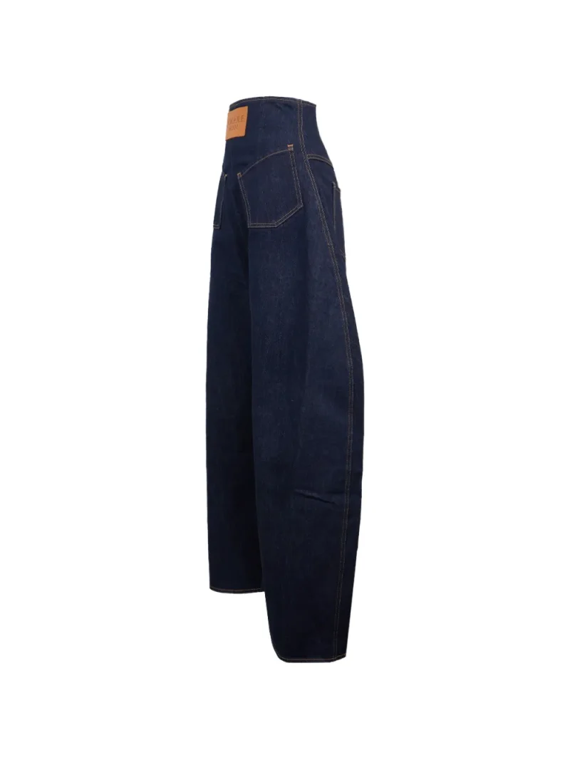 Jeans A.W.A.K.E. Mode Rounded bleumarin, cu talie inalta mulata, constructie supradimensionata tip balloon, cu inchidere fermoar la spate, logo patch plasat in fata si doua buzunare fata/verso aplicate. Potriviti pentru sezonul primavara/vara. 100% bumbac denim.